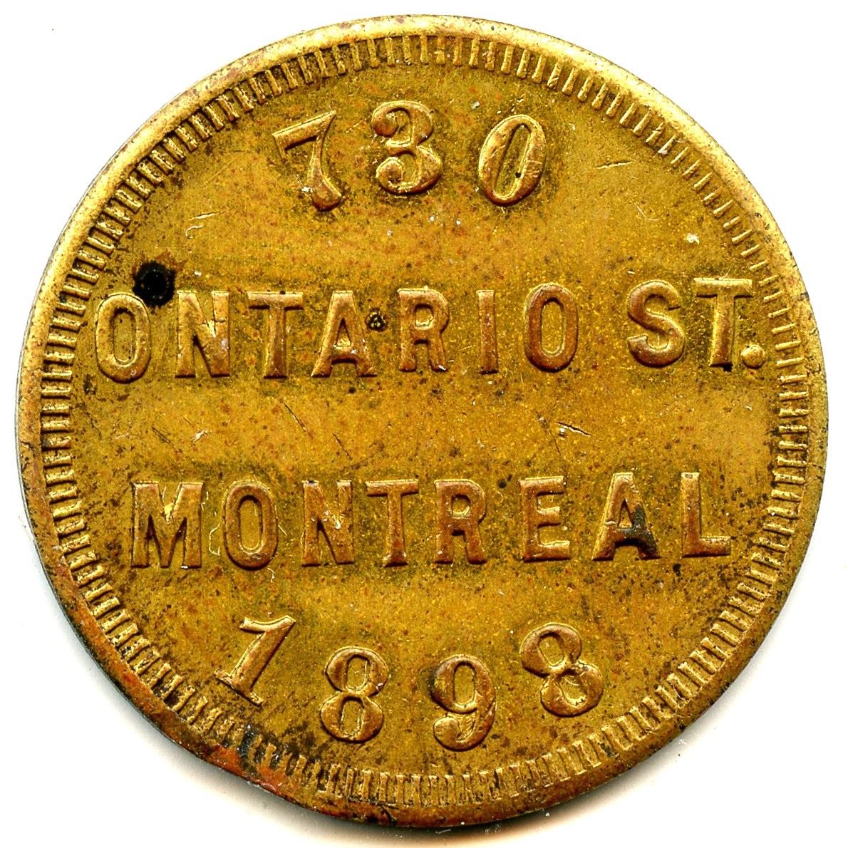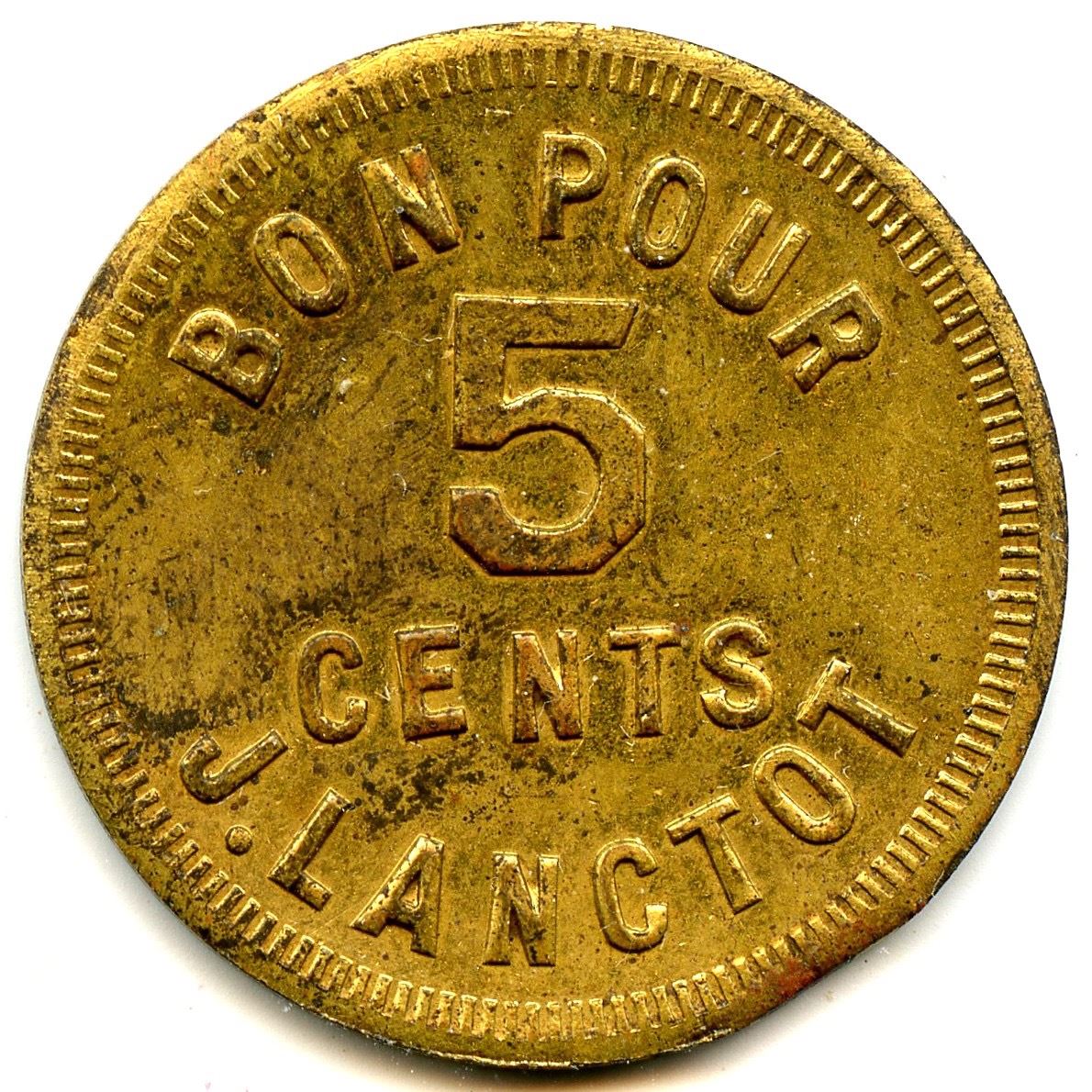 Breton 648, LeRoux 1071, J. Lanclot (spelling error), 5 Cents, 1893, Montreal, Brass, 400 issued, 25mm, 4.92g, EF; Breton 648A, J. Lanctot, 5 Cents, 1898, Montreal, Brass, 24mm, 5.01g, AU. 2pcs.