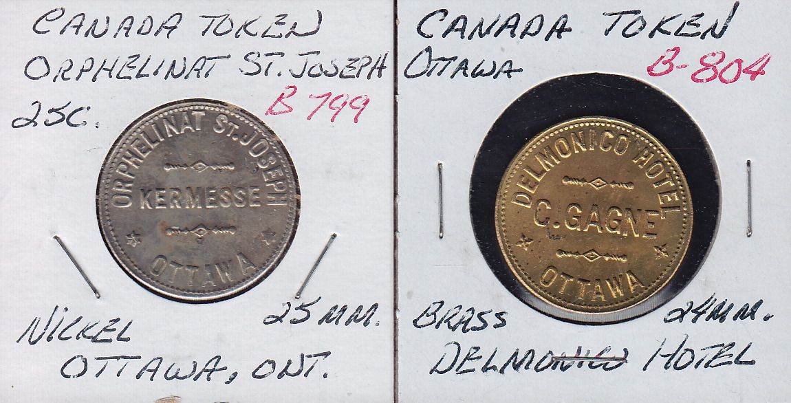 Post Confederation Tokens. BR 799, Kermesse, Ottawa, ON, white metal, UNC, BR 804, C. Gagne, Ottawa, ON, brass, UNC. 2 Pcs.
