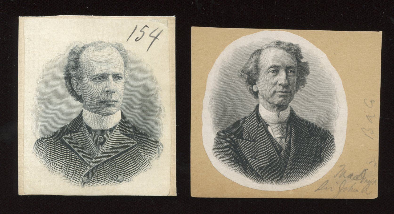 engraved by Canada Bank Note Co. for an 1882 Dominion of Canada $2 Essay, ref. CPMS Journal, Jan. 1978, page 5. Sir Wilfrid Laurier, a younger portrait die proof, BABN #154, engraved in 1896, the year Laurier became Prime Minister of Canada. Cut down, mounted on card.