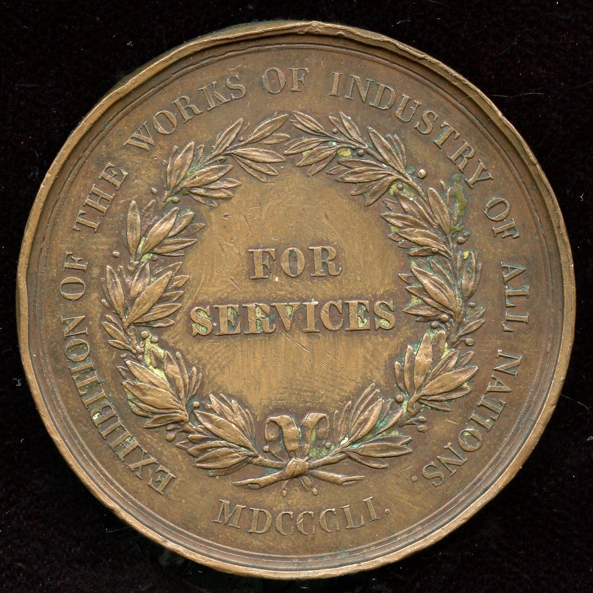 This medal was awarded for the services rendered to the exhibition by the many individuals involved in a varying capacities. In excess of 700 medals were awarded to the Police, Sappers and Fire Service. EF. bronze medal by W. Wyon, 48mm in diameter. BHM 2465, Eimer 1461, HP-A050.