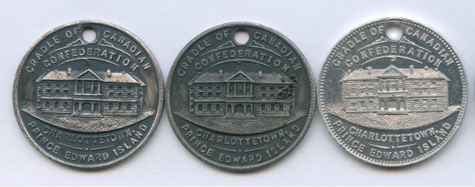 3 Golden Jubilee of Confederation medals dated 1914. Because of WWI, the special events of the day were cancelled. Two varieties of the medal were ordered, one aluminum, the other silver plated brass. The latter is scarce and desirable. 3 Pcs.