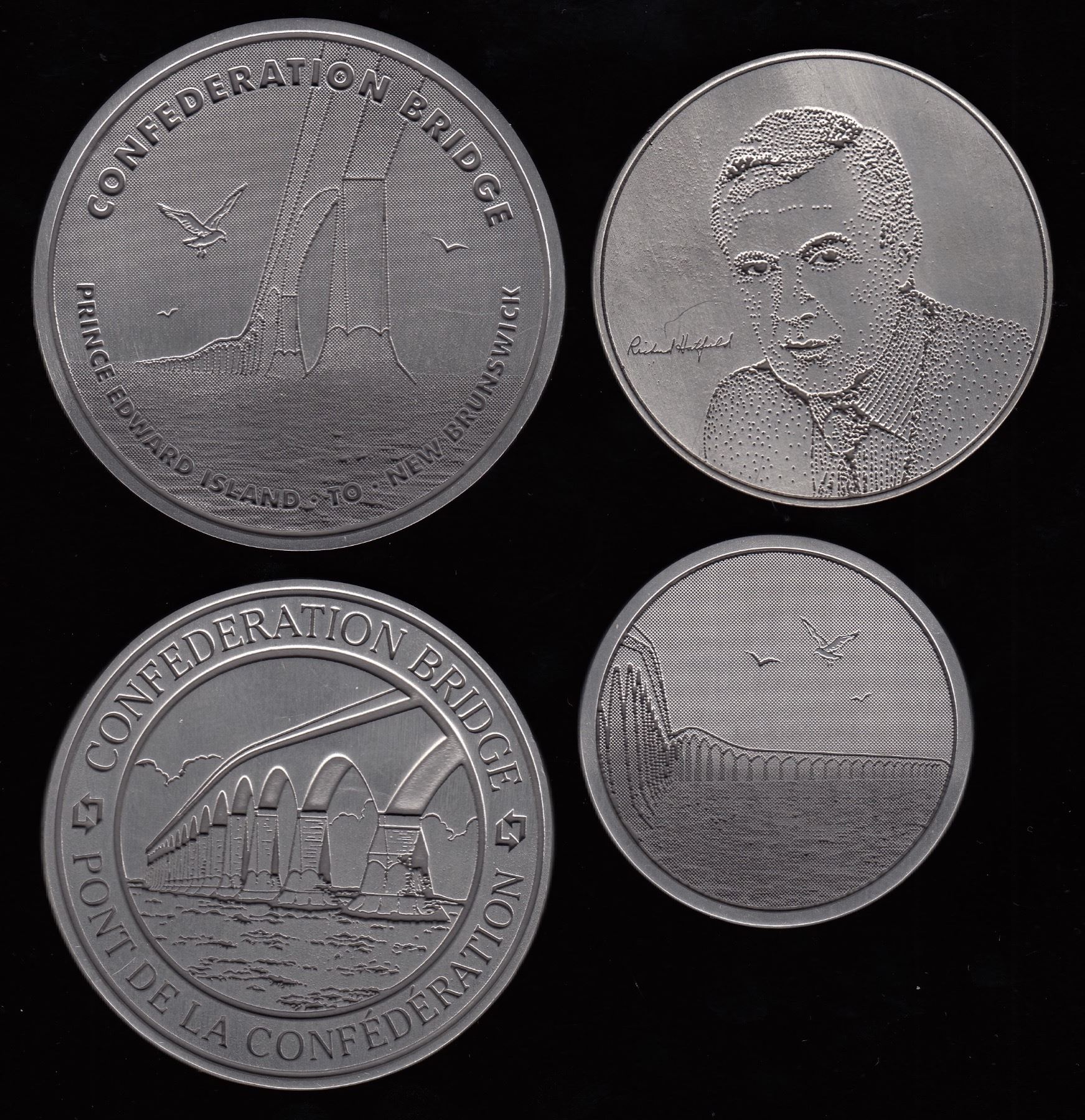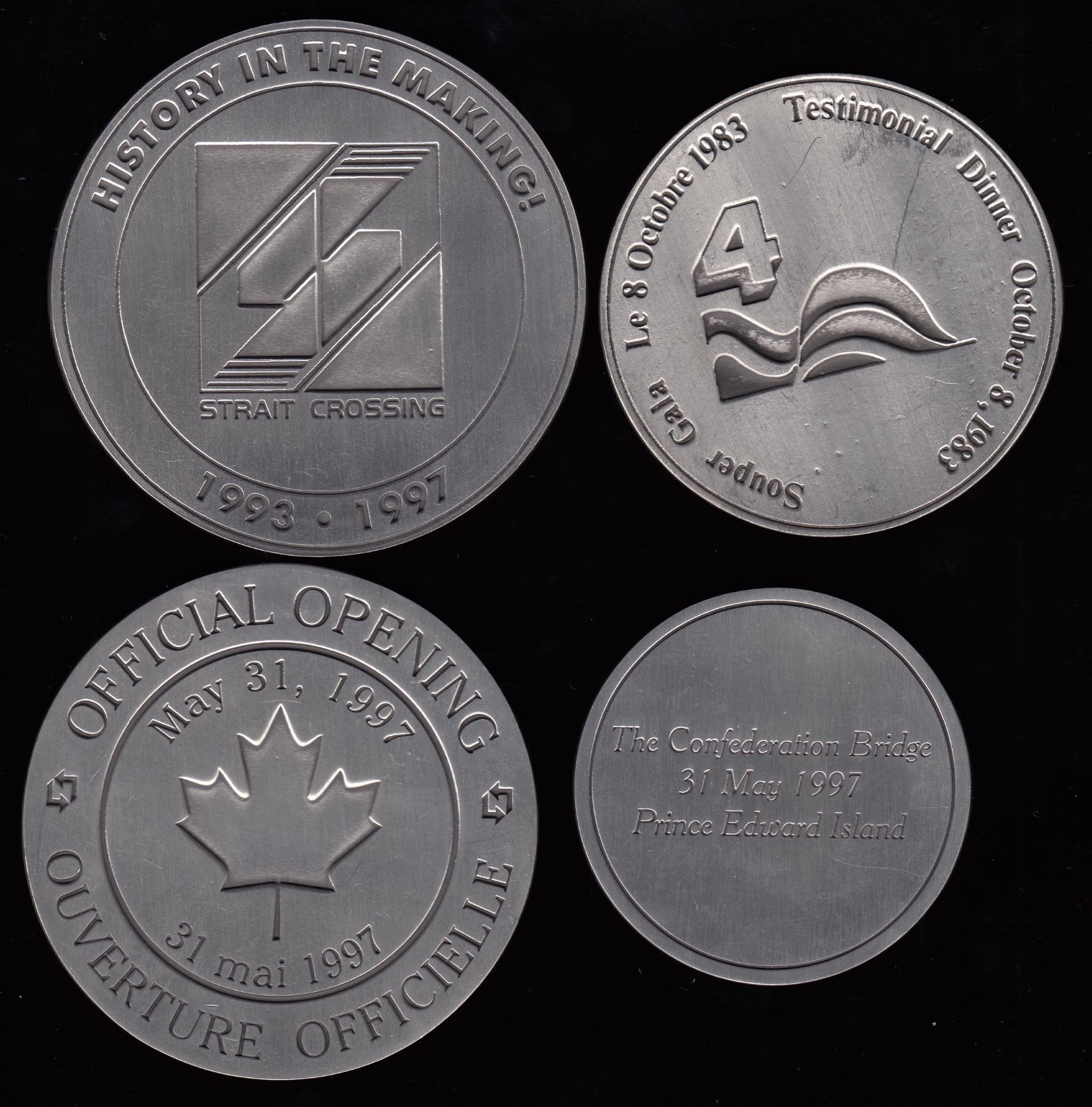 Aitken's Pewter produced, Confederation Bridge, History in the Making; Opening of Confederation Bridge, May 31, 1997; Official Opening Confederation Bridge; Testimonial Dinner for Richard Hatfield. Lot of 4 pcs.