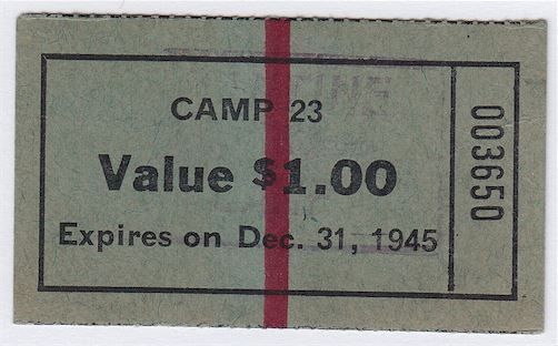 Prisoner of War Money - Monteith Ontario Camp 23 - CH LC-1837, two types of scrip exist for this camp, this is type 2. S/N: 003650.