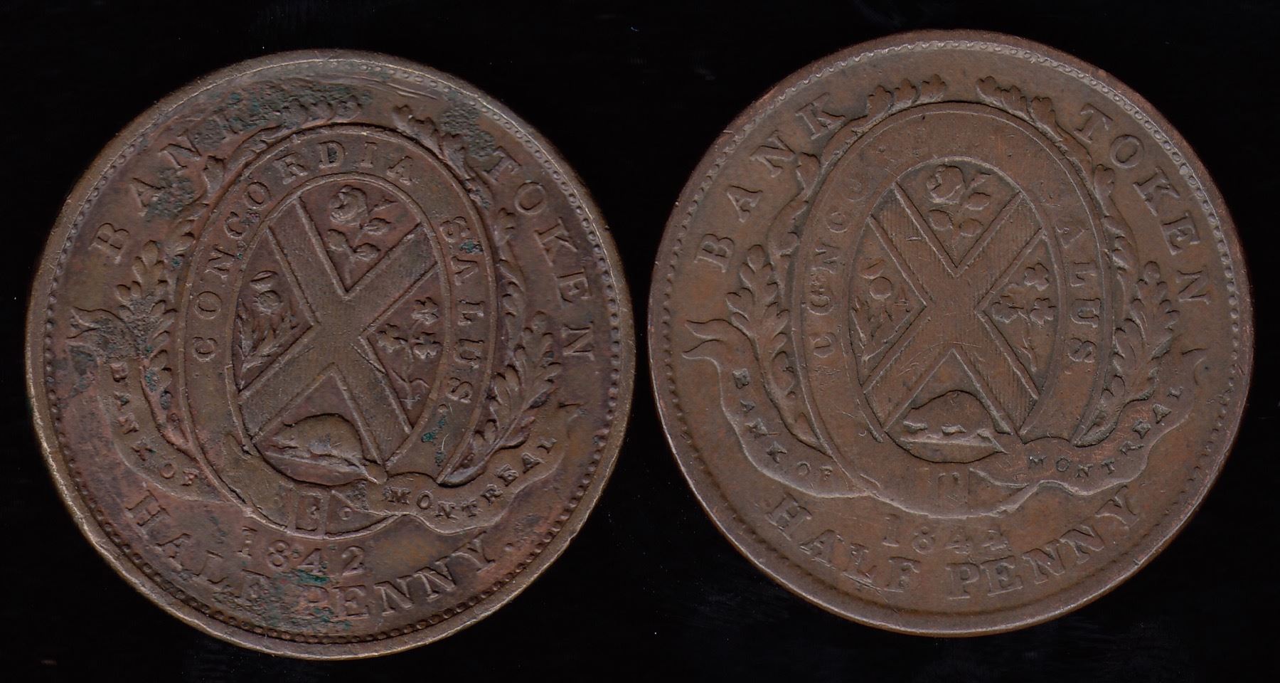 Br 527. CH PC-1A2 in EF, and PC-1B5 in a good VF. There is a small bit of corrosion in the details of the first; the second sports what appears to be the start of a drill hole between OF and CANADA. While we are glad that good sense prevailed, it must be classed as (rather insignificant) damage.