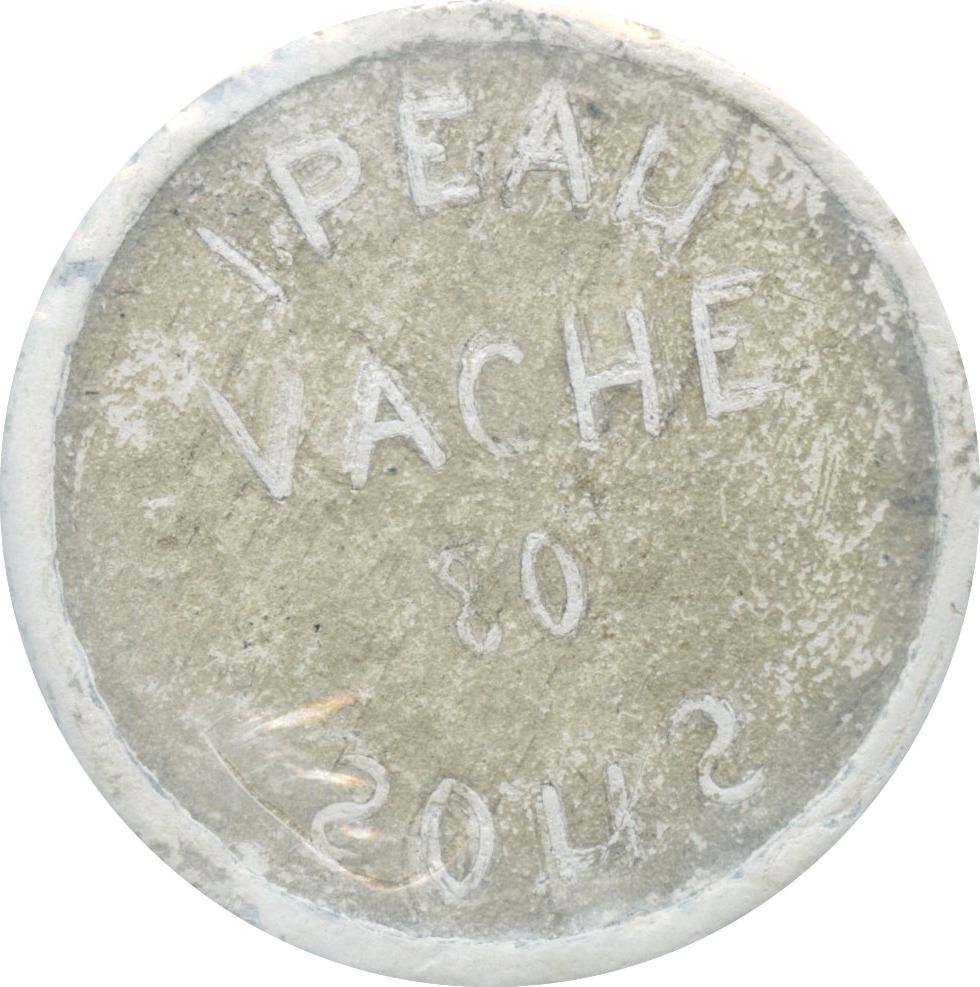 1 peau de vache (cow), 80 sous Leroux 1071i. These pieces were catalogued by Joseph Leroux in his second supplement c1897, and given further historical credence when listed by James J. Curto in his article "Indian and Post Trader Tokens: Our Frontier Coinage" that appeared in the August 1956 edition of the ANA's The Numismatist. Warren Baker in a 1995 fixed price list (catalogue 37) offered four of the five pieces for $500., with perhaps a more realistic description of "these absurd pieces .... are clearly spurious, late nineteenth century fantasies" During the 1890s there were several pieces issued that could be given a similar description i.e. the Thomas Church pieces, and the Montreal Bridge tokens. Leroux suggests that the pieces were made by a Montreal collector to trade for other collector pieces.