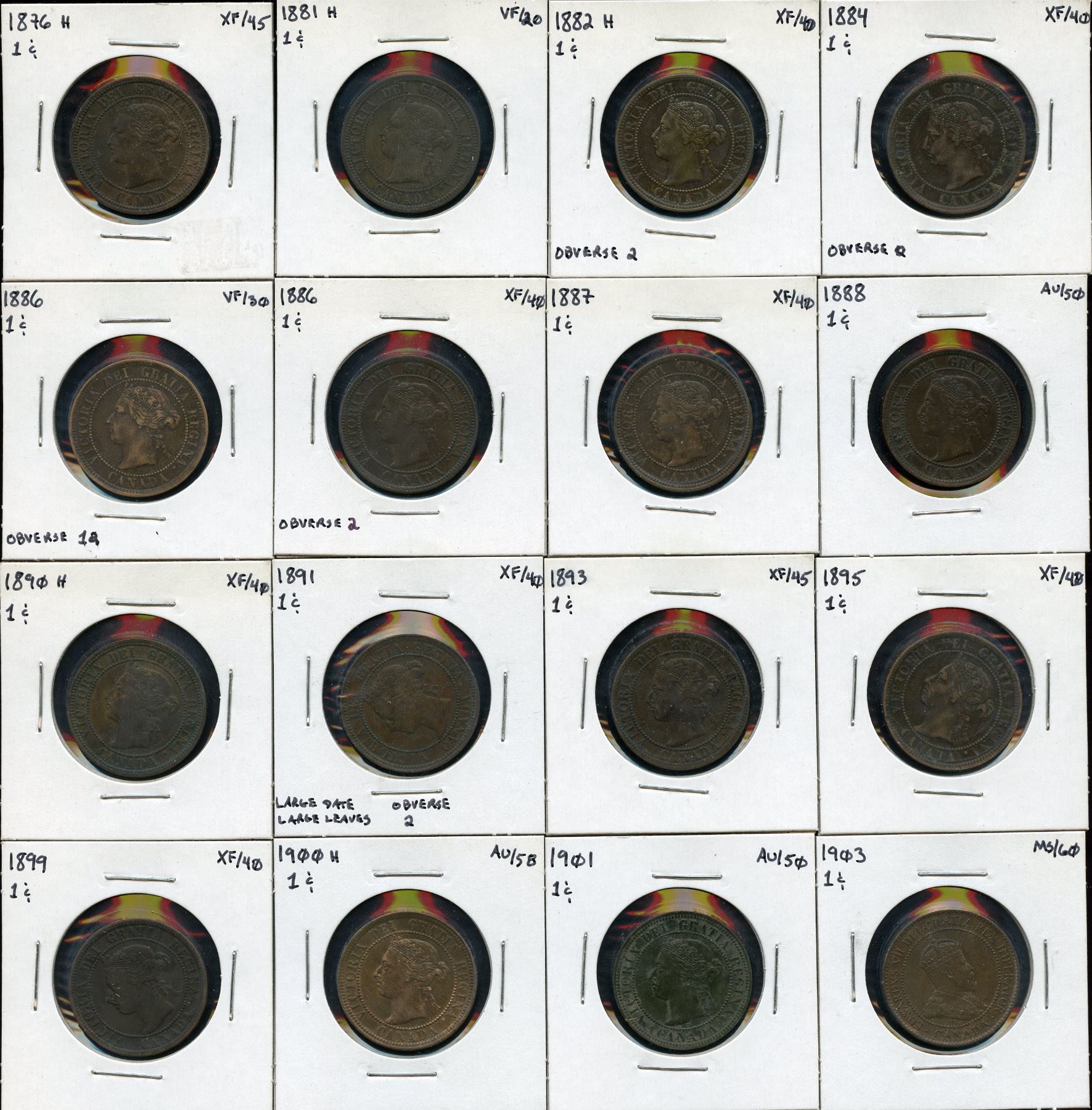Includes: 1876H EF. 1881H VF. 1882H EF. 1884 EF. 1886 VF, obv #1. 1886 EF, obv #2. 1887 EF. 1888 AU. 1888 AU+. 1890H EF. 1891 LDLL, obv #2. 1893 EF+. 1895 EF. 1899 EF. 1900H AU+. 1901 AU. 1903 AU/UNC. 16 Pcs.