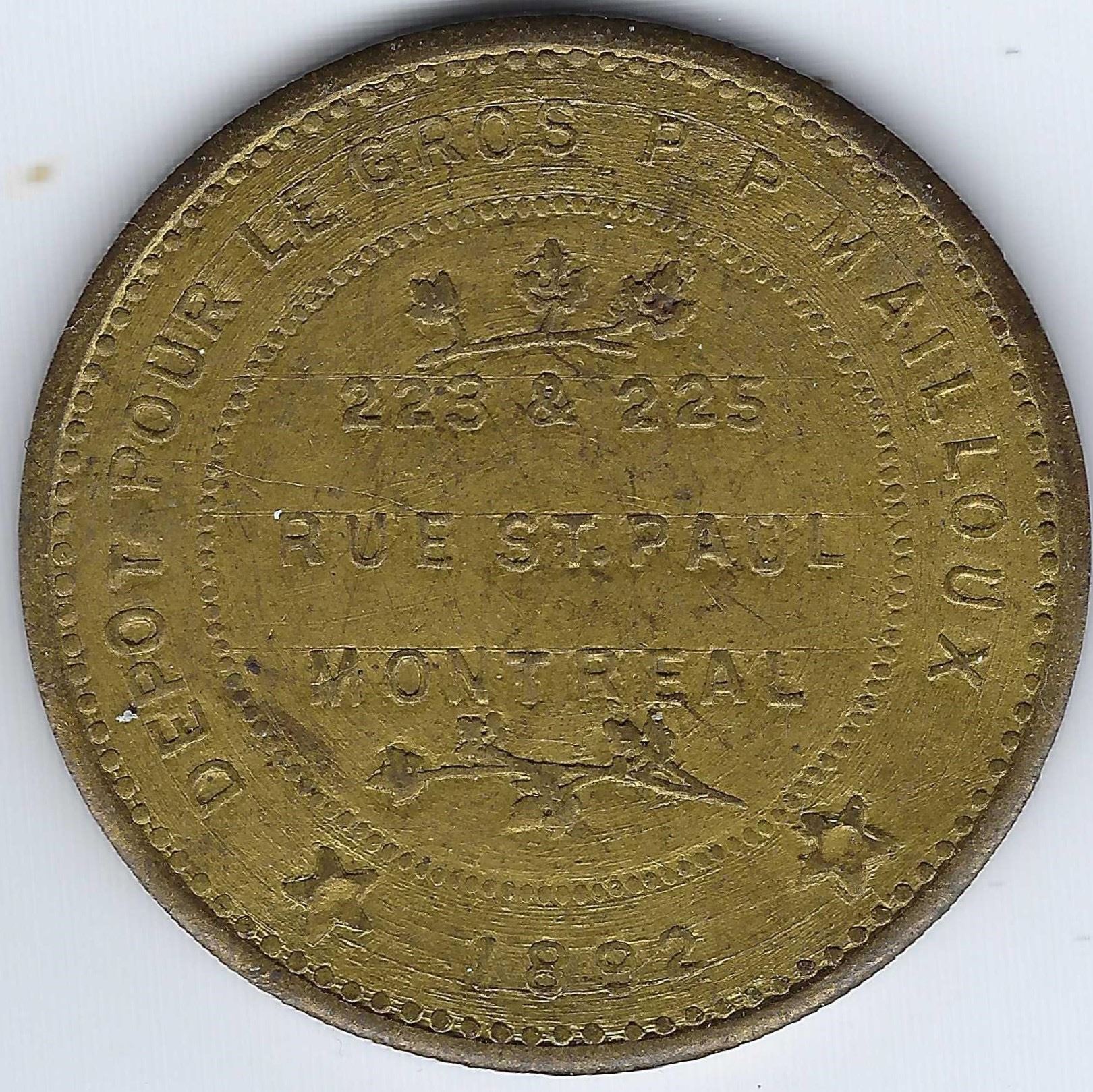 Issued by L. Gravel of Montreal in 1892, brass, 111 made, AU, 33 mm, 10.8g.