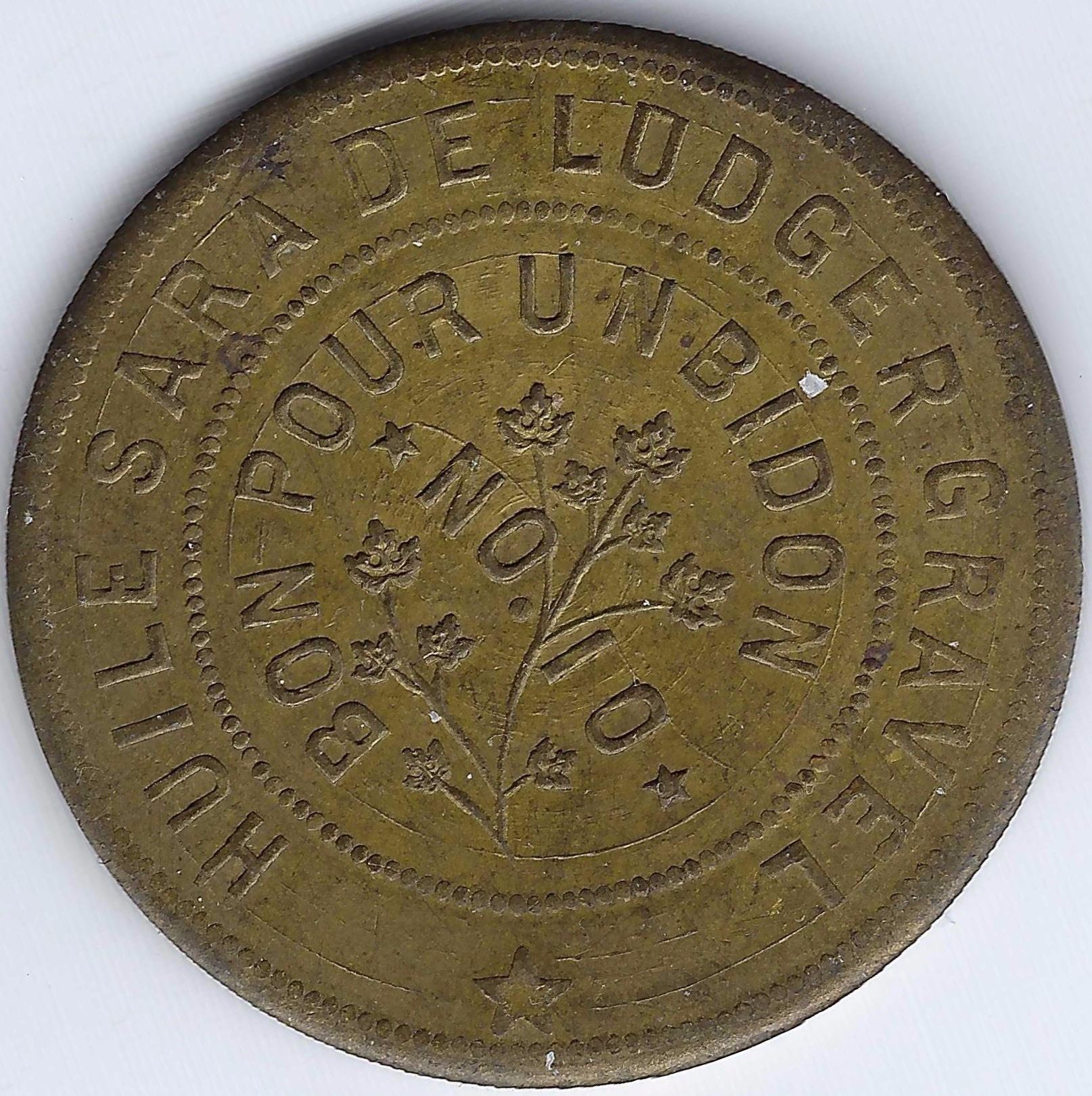 Issued by L. Gravel of Montreal in 1892, brass, 111 made, AU, 33 mm, 10.9g.