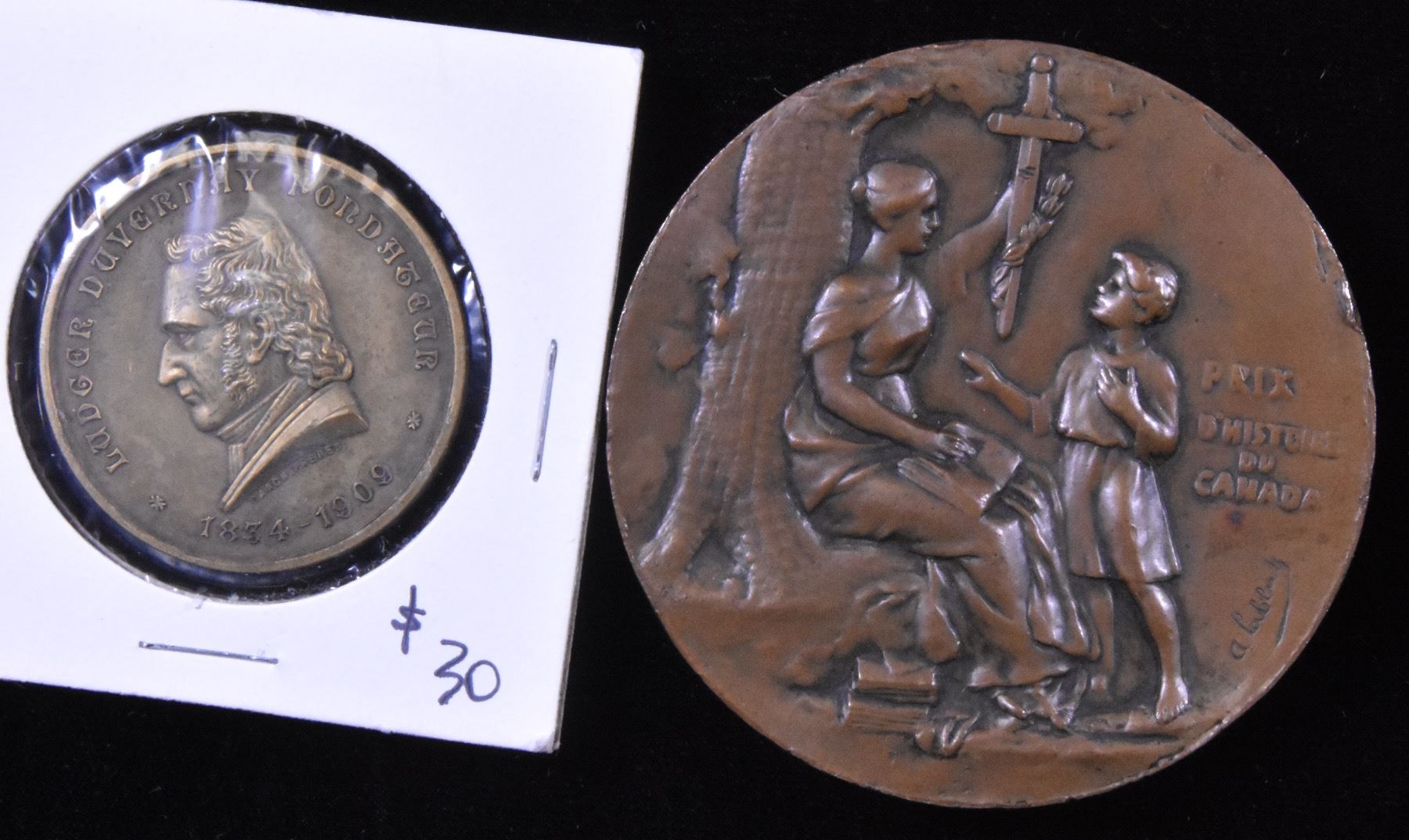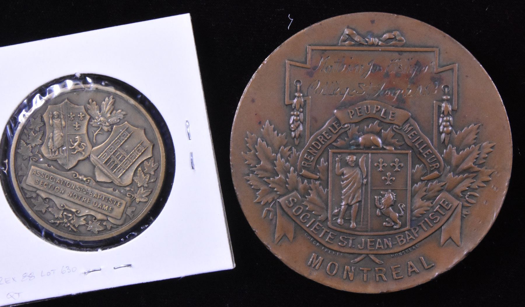 St. J. Baptiste Association, Notre Dame , bronze; St. J. Baptiste Society history prize medal issued to Mathien Jos. Elsliger, St Joseph college, Memramcook, NB. Lot of 2.