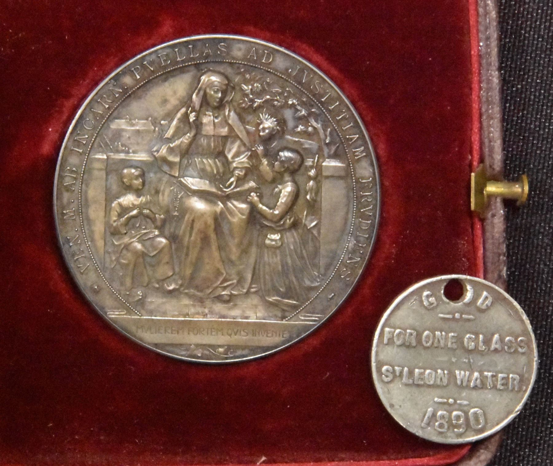 Stefano's son Federico Johnson, employed medalists from the Milan Mint (closed 1887) and producing medals himself to commemorate Italian historical events, religious events, industrial, commercial and financial activity; products were exported by his son Stefano Johnson II and his grandson Cesare Johnson. 1943 - their workshop was destroyed in air-raids; Cesare built new premises in Milan; the company produced medals in collabora on with Italian sculptors as Emil- io Greco, Luciano Minguzzi, E. Fazzini, F. Bodini, E. Manfrini, Arnaldo Pomodoro and V. Croce . 1990s - Riccardo Johnson, Mariangela Johnson and her husband, Roberto Pasquale continued the work; and Breton Token #619 / CT-81-16- 1890 St. Leon mineral water co. Limited mineral springs St. Leon Quebec good for one glass Token. Diameter 26mm (holed for pendant use)