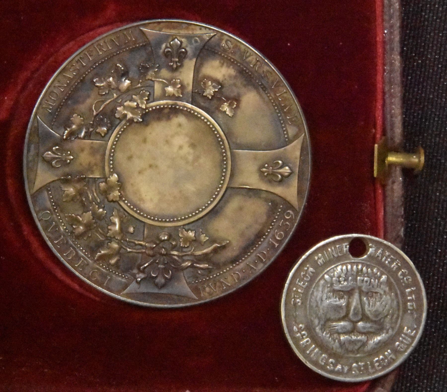 ADJVSTITIAM$ ERVDIENS / MVLIEREM FORTEM QVIS INVENIET (The Ursuline Monastery and Inner Garden / Ursuline Convent of Quebec City—founded in Italy in 1535, and established in Canada in 1639), bronze, in case of issue as was made by Stabilimento SPa Stefano Johnson Co. Milano : 1836 - founded by Stefano Johnson. He struck his first medal in the Milanese workshop of his father, Giacomo Johnson; Giacomo had recently moved from Birmingham, England a era brief period of activity in Lyon, France.