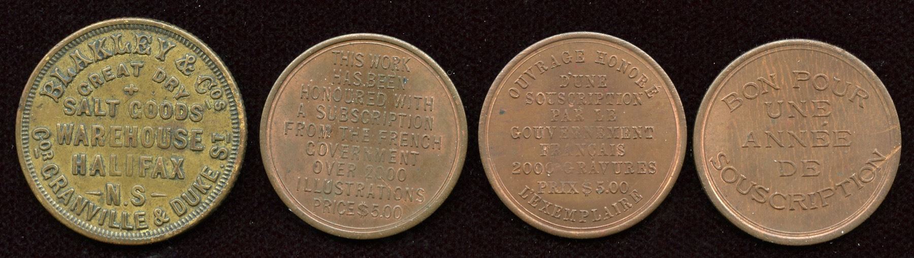 Quebec & Nova Scotia - Br. 585, 586, 587, 901. Lot of four tokens.