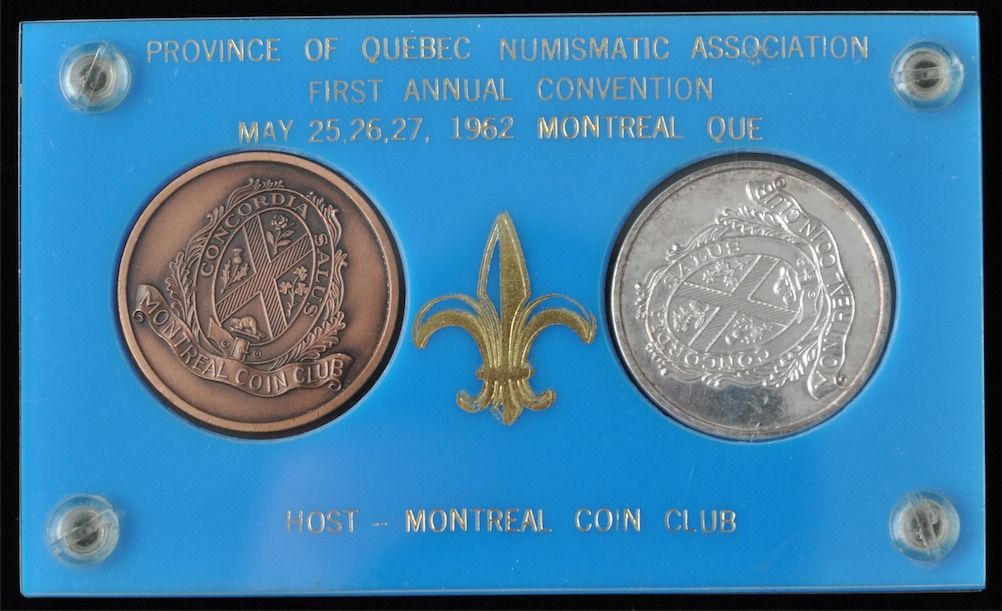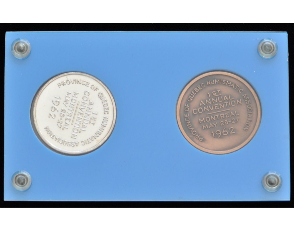 Quebec Numismatic Association - Province of Quebec Numismatic Association bronze and silver medals, housed in a printed plastic presentation holder, prooflike.