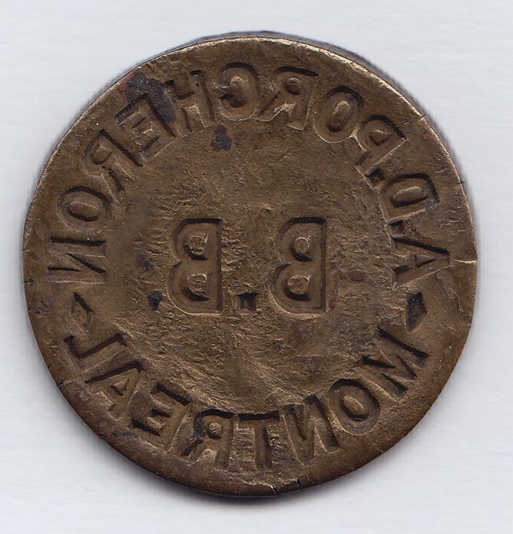 Quebec Token - Porcheron was a tobacco merchant in Montreal. He marked his plug tobacco with metal stamps showing his name and city. A collector acquired the stamps and produced lead tokens using various reverse designs. VF for type. Scarce.