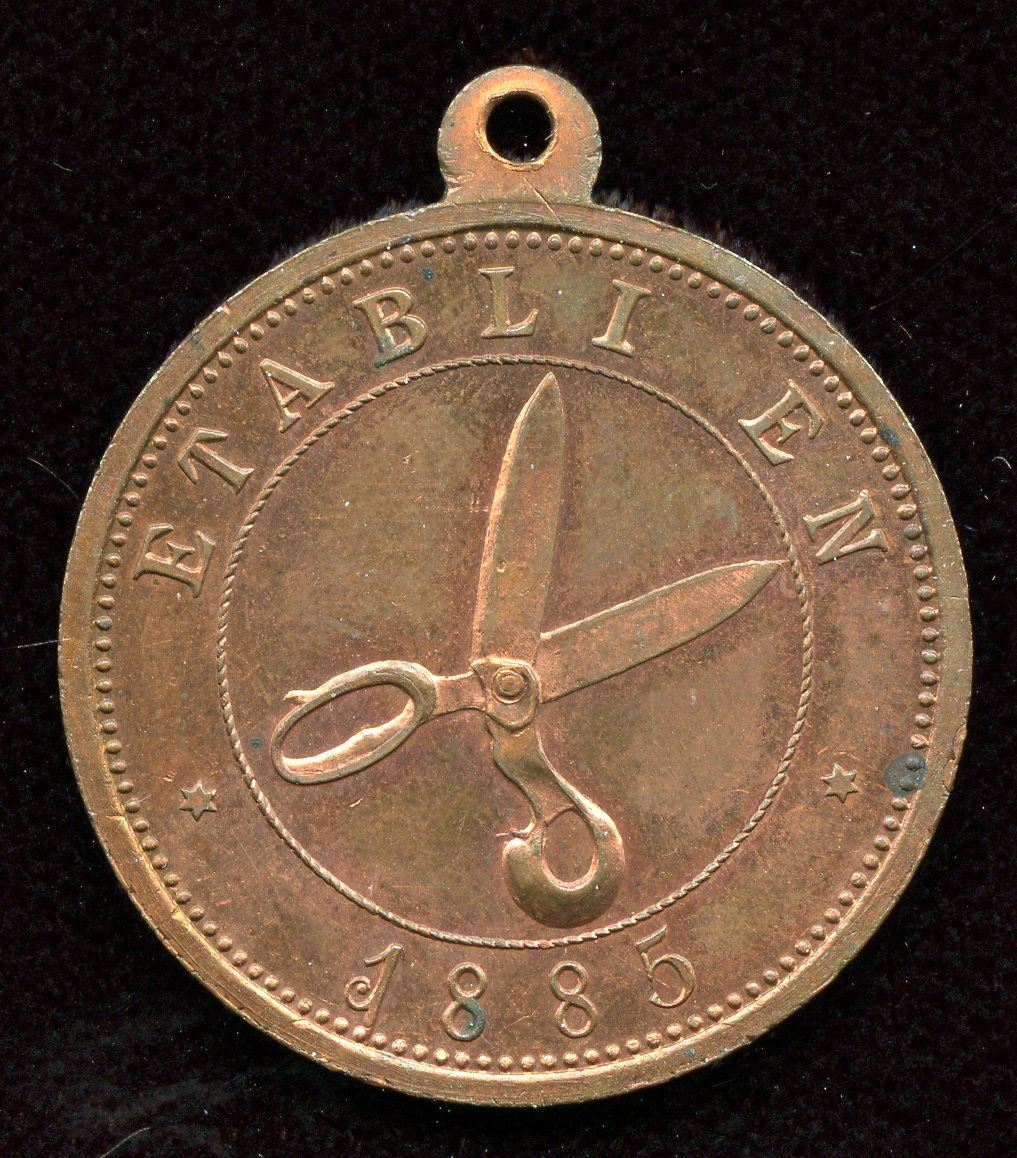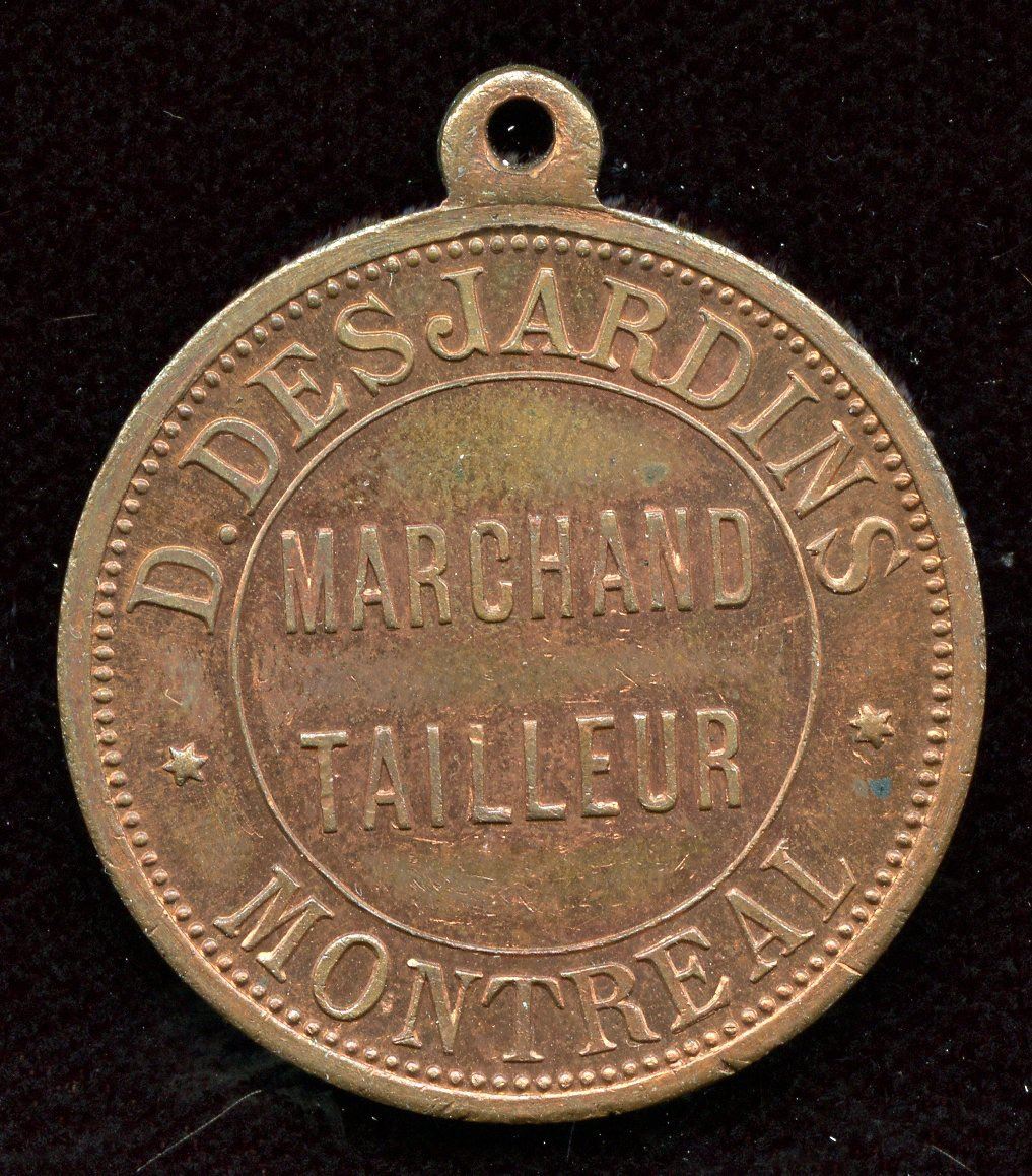 Br. 575, Desjardins token, with loop. Copper, Unc, much red.