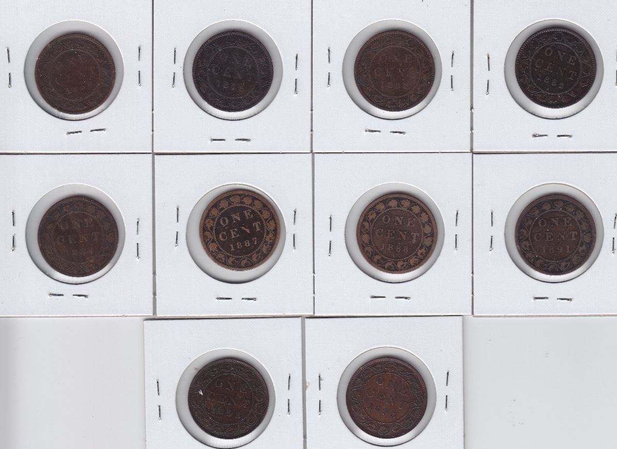 Queen Victoria One Cent Coins - Lot of 10 - Grades vary, viewing is recommended. 10 Pcs.