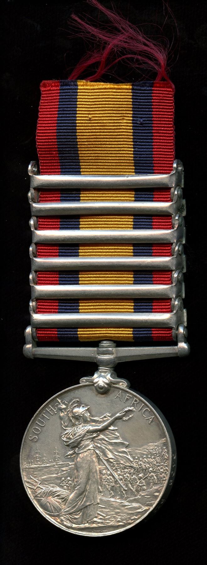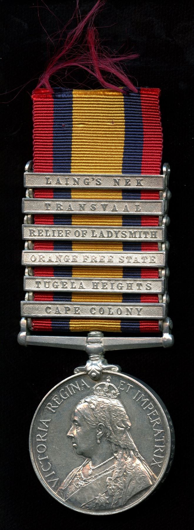 Cape Colony, Tugela Heights, Oranfe Free State, Relief of Ladysmith, Transvaal, Laing's Nek. Awarded to Pte. T. Jackson, 1st York and Lancaster Reg't.