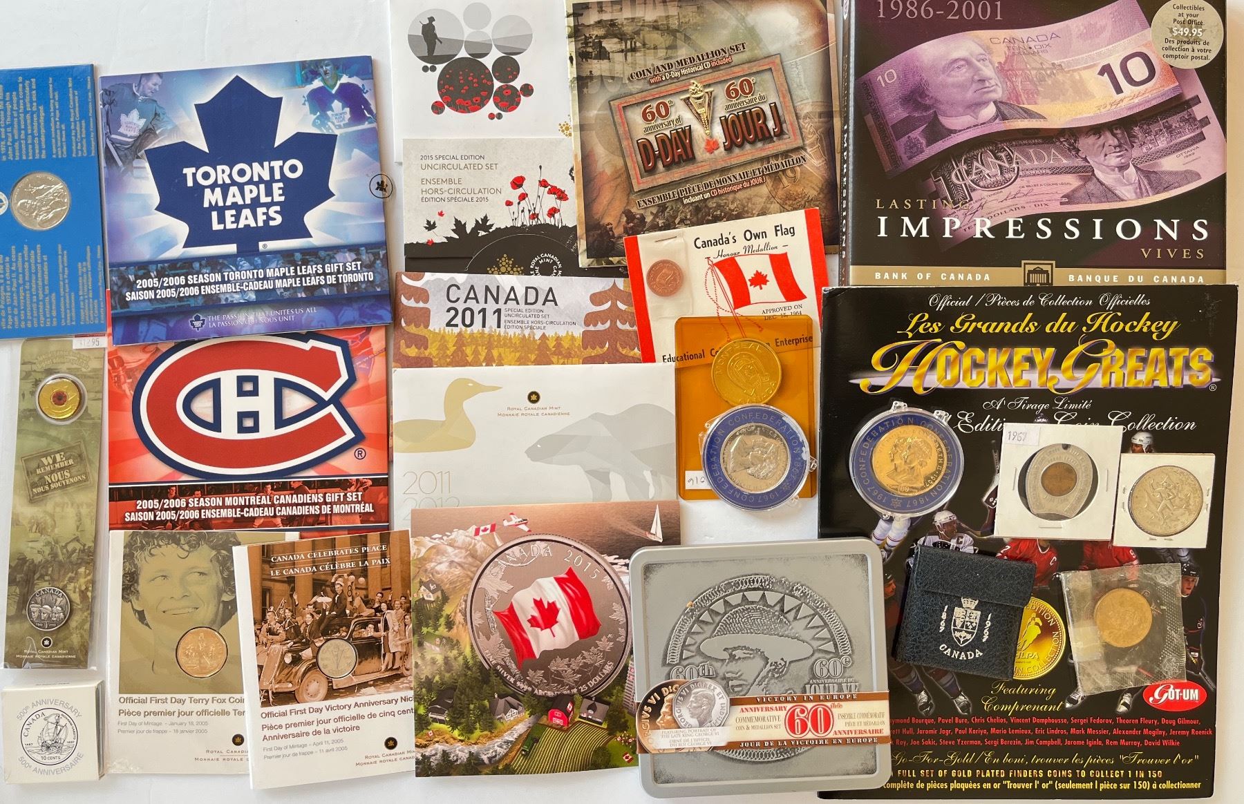 Includes lots of interesting stuff such as Lasting Impressions $10 set, Got 'ems NHL Hockey Greats set, Canada Remembers Medallion set, $25 for $25 coloured coin, 2006 Montreal & Toronto coin sets, 2015 Special edition uncirculated set and plenty more!
