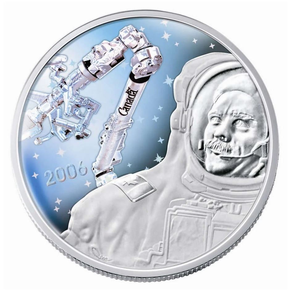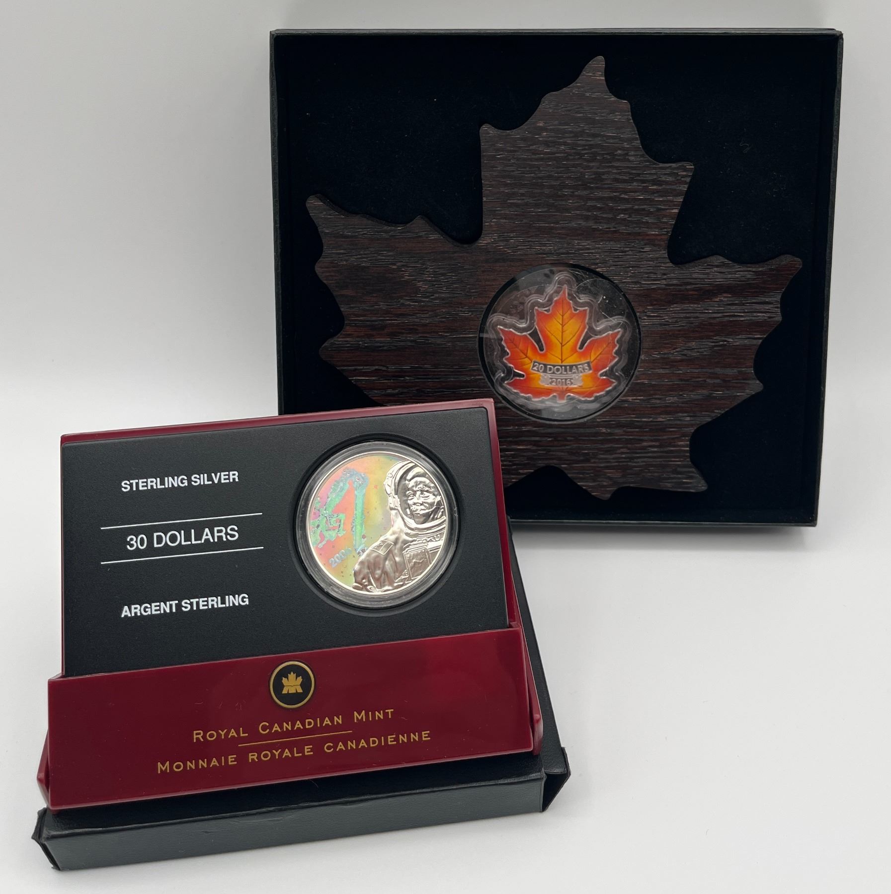 Includes: 2016 $20 Canada's Colourful Maple Leaf; 2006 sterling silver $30 Canadarm. 2 pcs.
