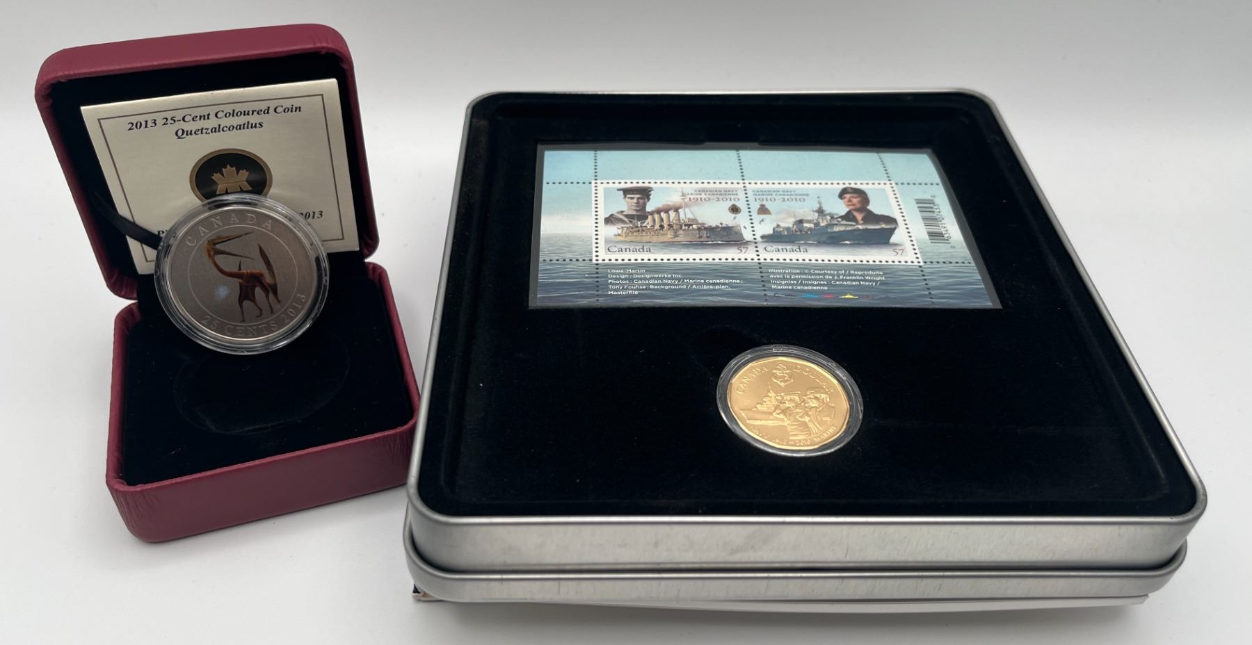 Includes: 2010 Royal Navy gold plated loon set; 2013 25-cent Quetzalcoatlus. 2 pcs