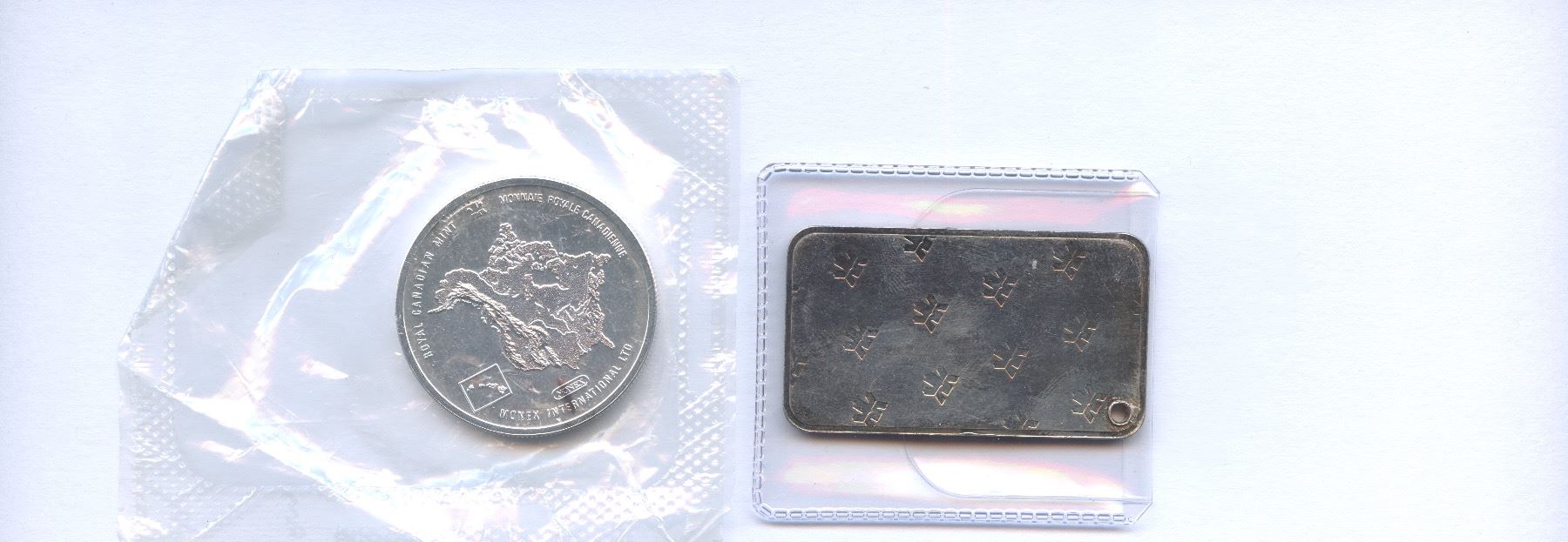 1982 Monex International 1oz silver .999, made by/engraved the Royal Canadian Mint, with American Eagle and map of North America.