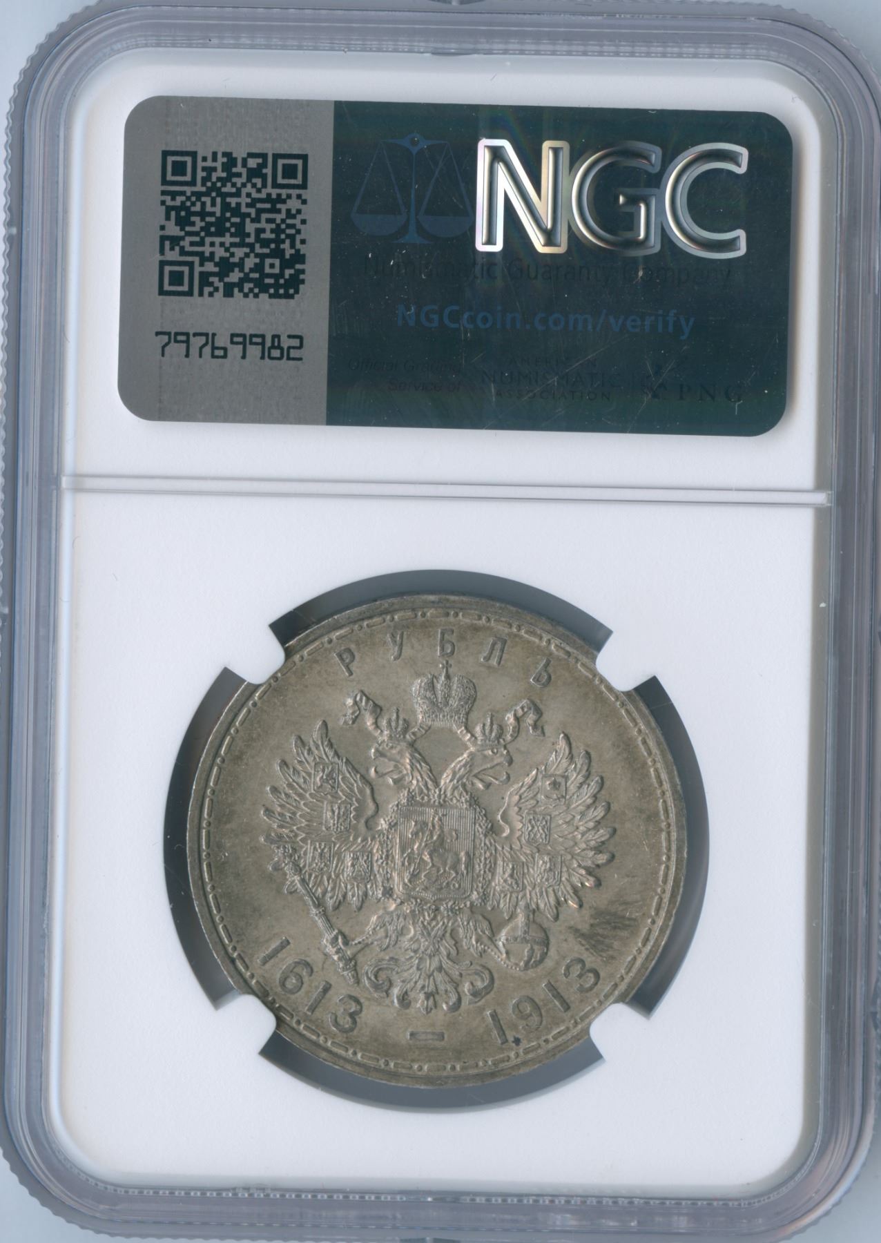 NGC UNC with Details, Spot removed on reverse. Commemorating the 300th Anniversary of the Romanov Dynasty. Hints of gold toning on obverse & reverse.