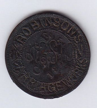 Robinson Carriage Works Countermark. Kingston, ON, host coin 1884 Canadian large cent.