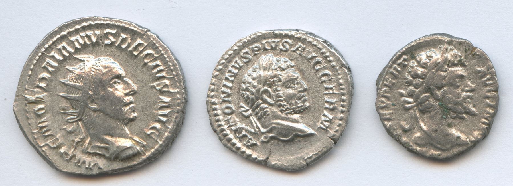 Septimius Severus, AR Denarius - aVF/gF || Caracalla, AR Denarius. Rev: Liberalitas standing holding abacus and cornucopia; RIC 302 - aEF || Trajan Decius, AR Antoninianus - VF. 3 Pcs.