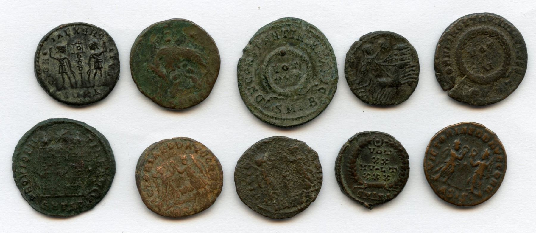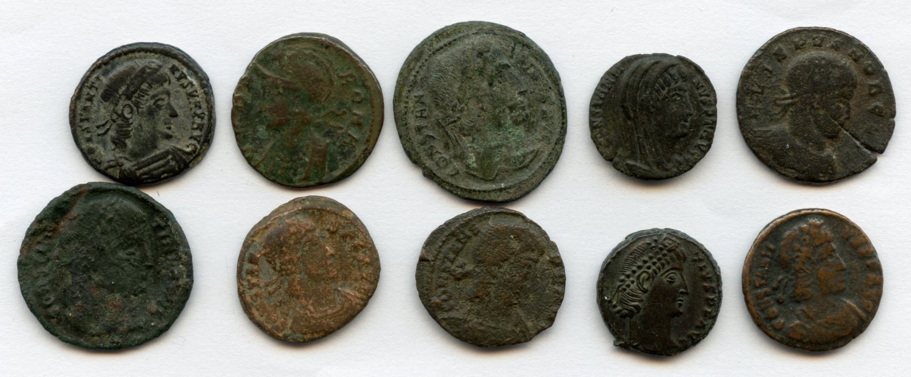 Constantine I (AD 306-337) - 6 coins (including a Divus Constantine & Urbs Roma commemorative) || Constantius II (AD 337-361) - 2 coins || Constans (AD 337-350) - 2 coins. 10 Pcs.