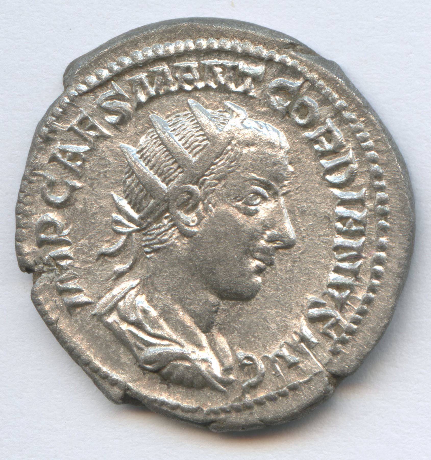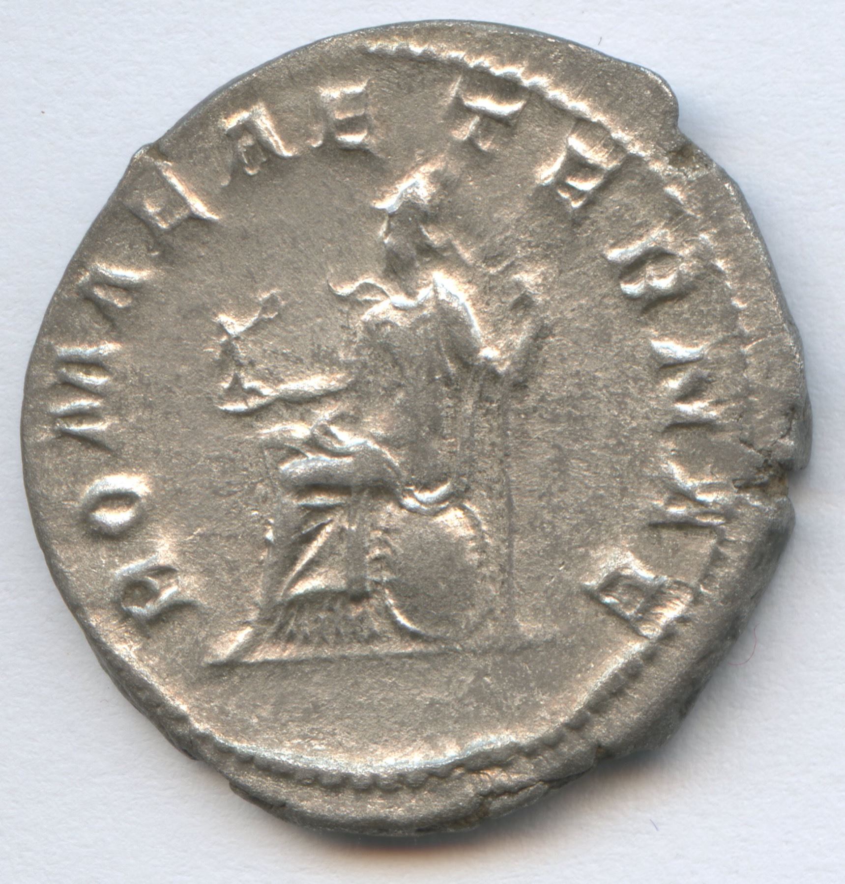 (21mm, 4.54g) Radiate, draped, and cuirassed bust right. Rev: Roma seated left on shield holding Victory and spear. Rome mint. RIC 83; EF.