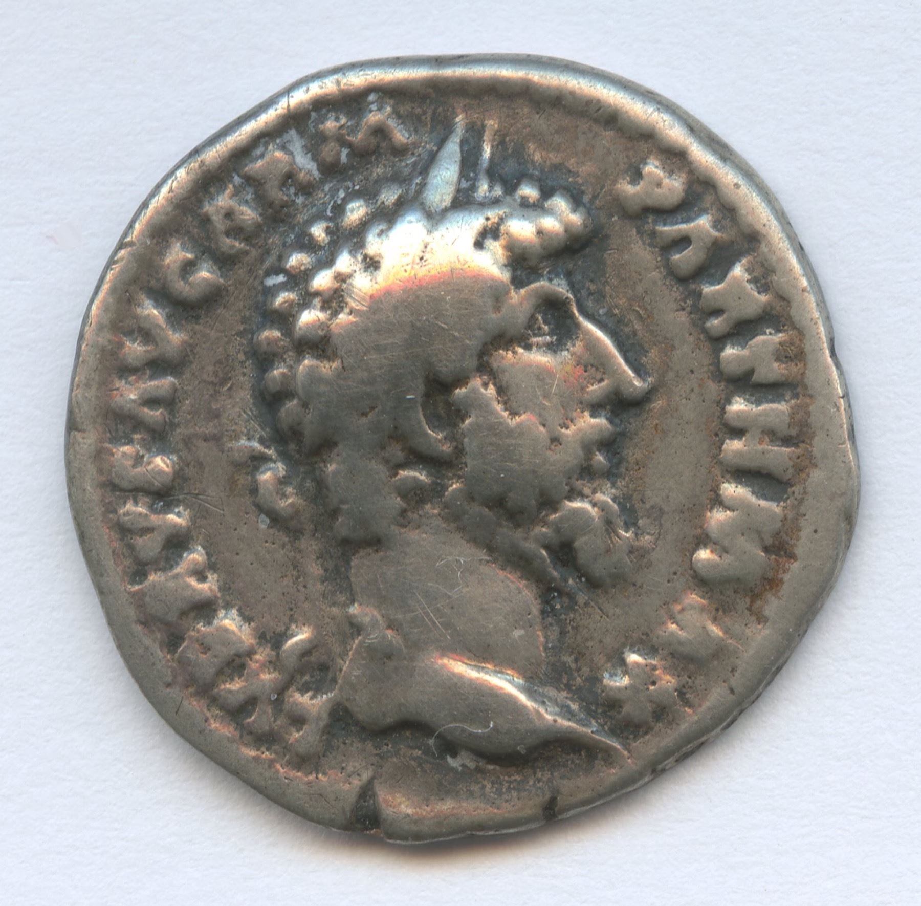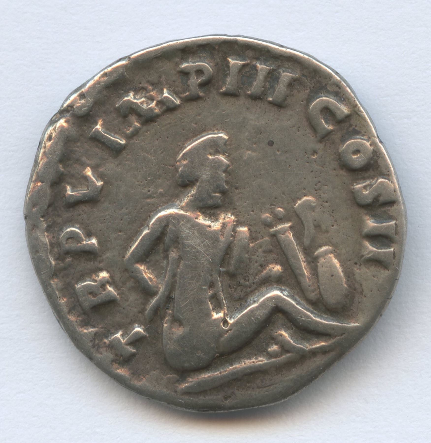 (18mm, 2.85g) Laureate head right. Rev: Parthian captive seated right, hands bound behind, at feet to right, bow, quiver, and shield. RIC 540; gF, polished areas