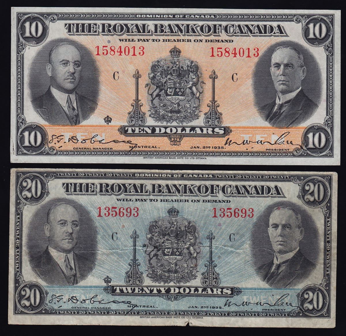 Royal Bank of Canada $10 & $20, 1935