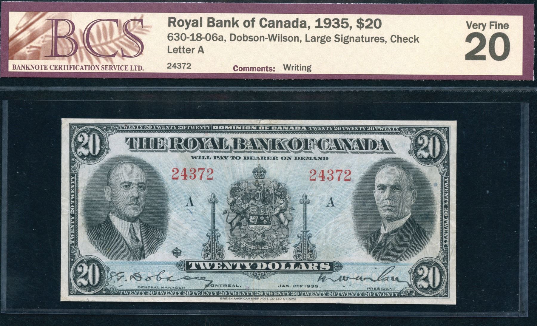 CH 630-18-06a. BCS Very Fine 20, writing. S/N:24372/A.