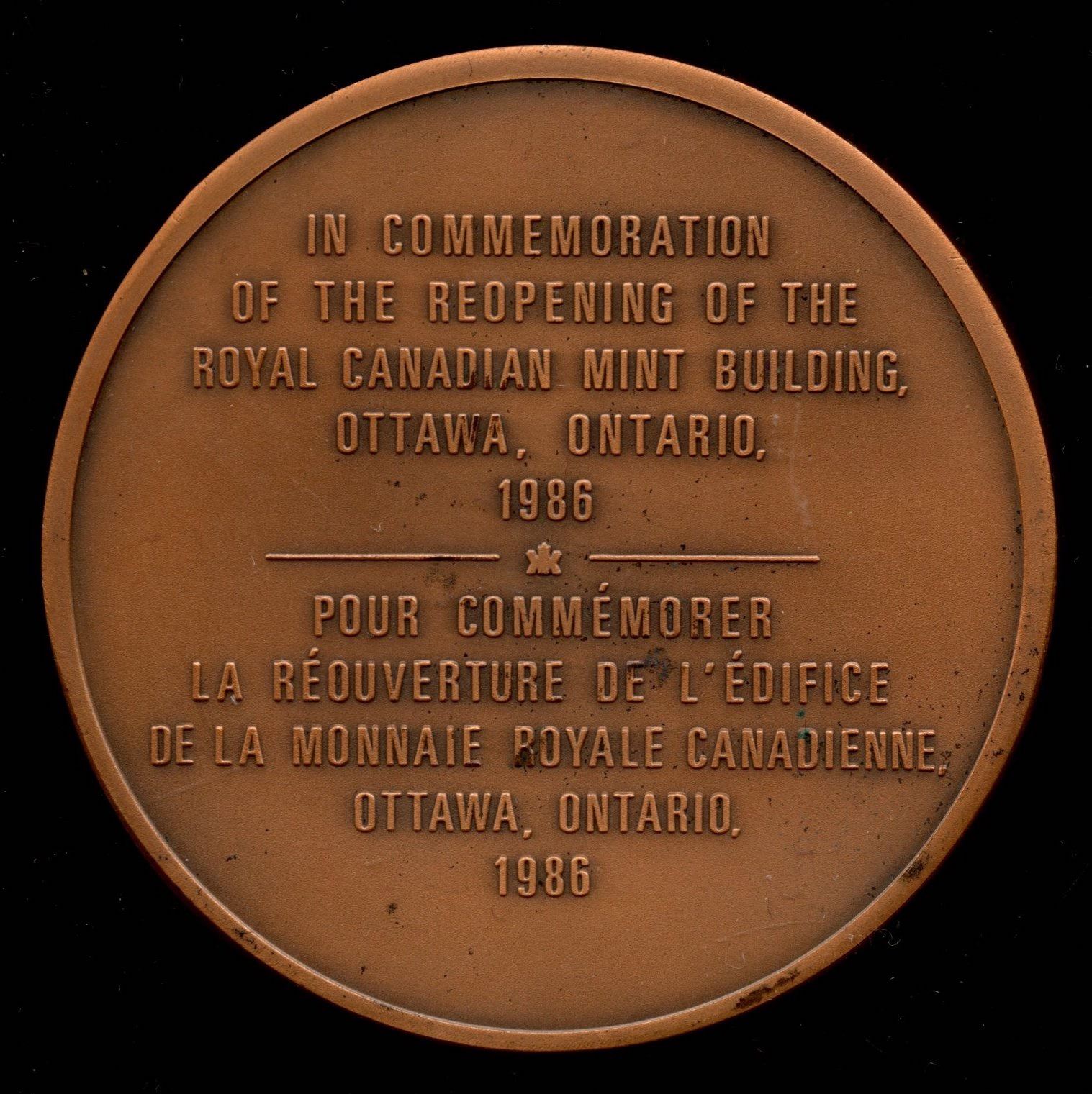 1986 Commemoration of the Reopening of the Royal Canadian Mint Building, Ottawa, Ontario.