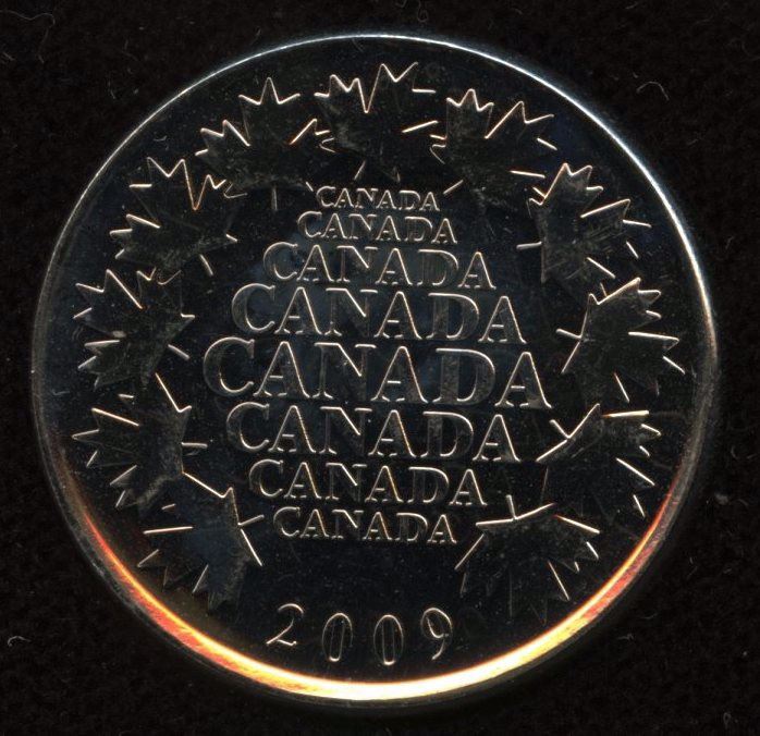 Royal Canadian Mint, "Salesman Sample" Token. CH# SS-4 - Date Variety. Small size, Canada / Maple Leaves. Multi-ply nickel-plated steel, 25mm. Variety of CH# SS-4 as it is dated "2009", scarce