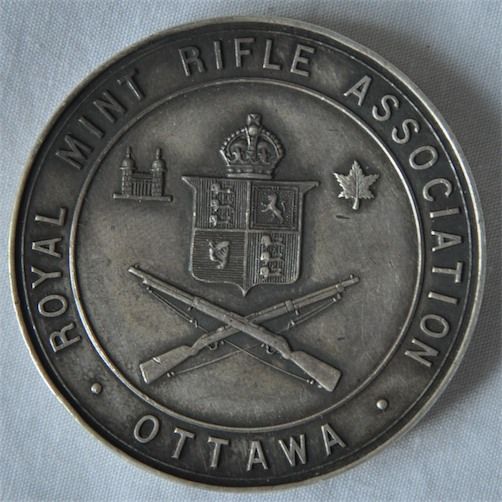 AR 41mm. Royal arms dividing gate and maple leaf, crossed rifles below. Rev. Wreath of maple leaves, engraved "PRESIDENTS MEDAL/HIGHEST AGGREGATE/ FIRST CLASS/ L.F. EDEY/1910. EF/VF with a test cut on rim.