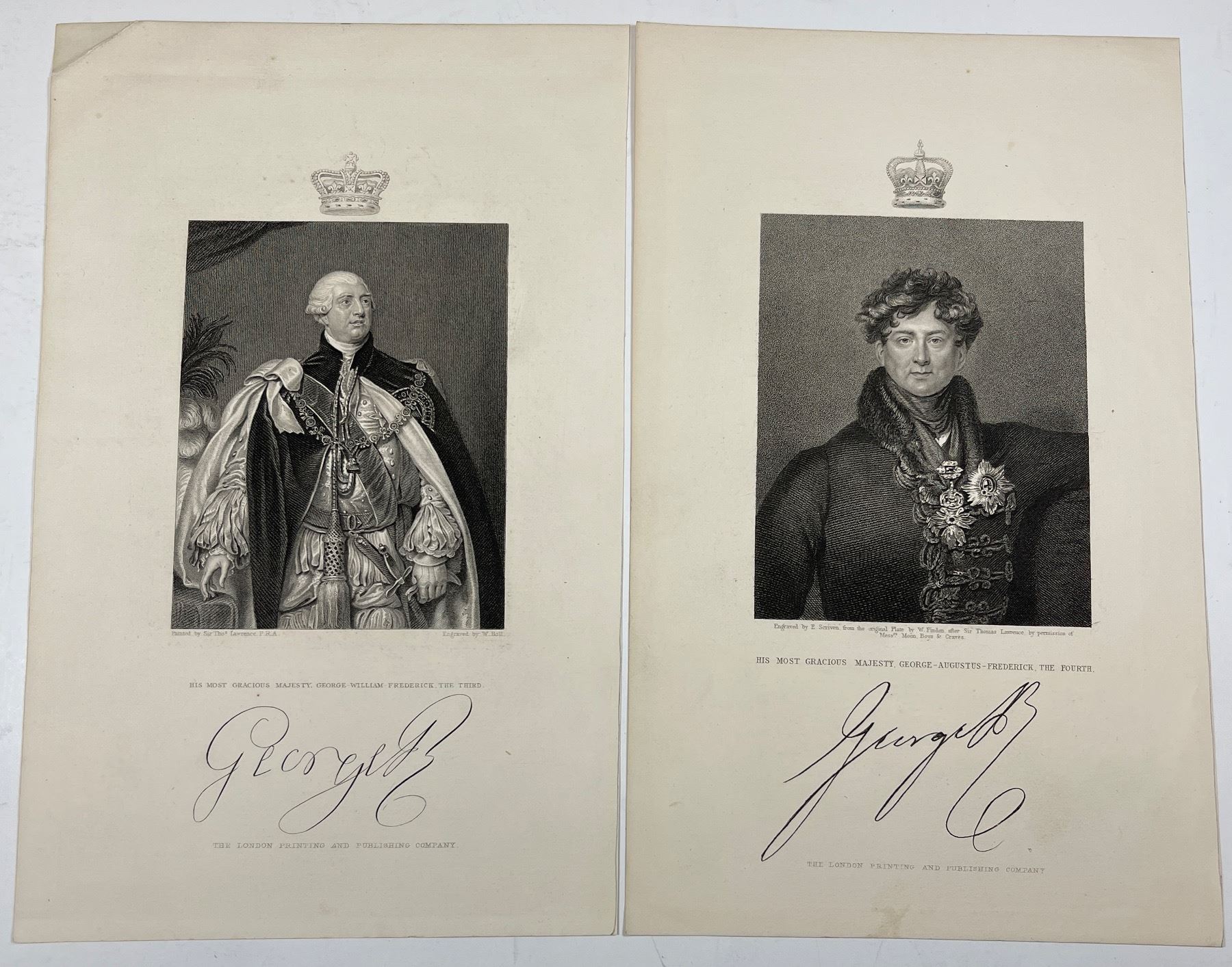 2 splendid steel engravings of King George the Third and King George the Fourth; a souvenir program, published by the 2nd Beaver Troop of the Chatham, NB, Scouts of the 1927 canadian Diamond jubilee celebrations; 3 scarce view master puctures of the Coronation of Queen Elizabeth II; 17 beautifully produced Coronation of King George VI in 1937; a letter from Buckingham Palace that accompanied the medal issued for Queen Elizabeth's 1953 coronation; finally, a program celebrating Queen Elizabeth's Platinum Jubilee in Halifax, NS.