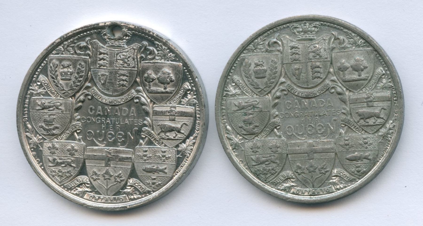 Two 1897 Queen Victoria's Diamond Jubilee medallions issued by P.W. Ellis of Toronto.