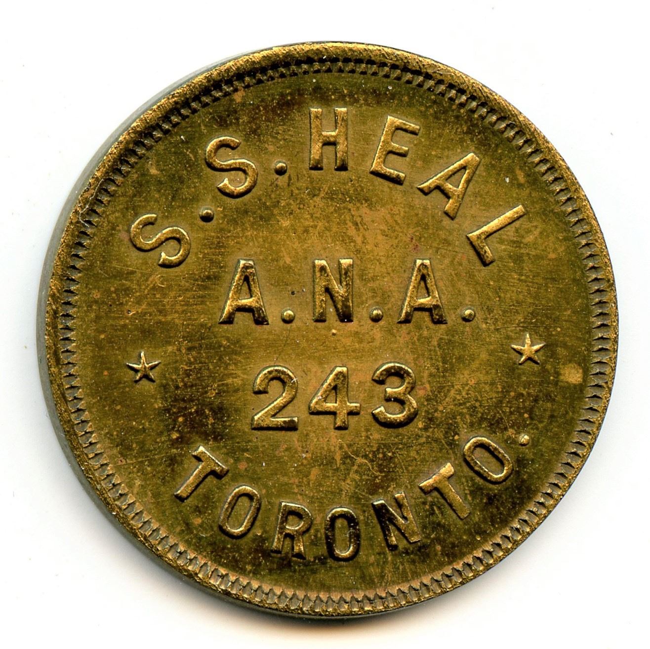 S.S. Heal, Toronto, Ontario, Numismatist Token.