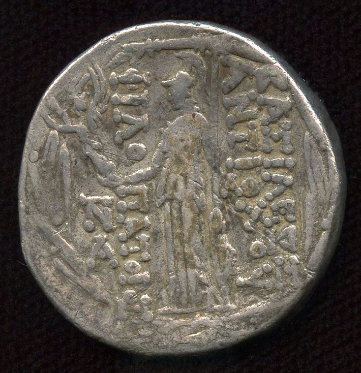 (28mm, 15.94g) Diademed head r. Rev: Athena standing left, holding Nike, spear and shield; entire design within laurel-wreath. Sear-7160 variety; aVF, scratch on rev.