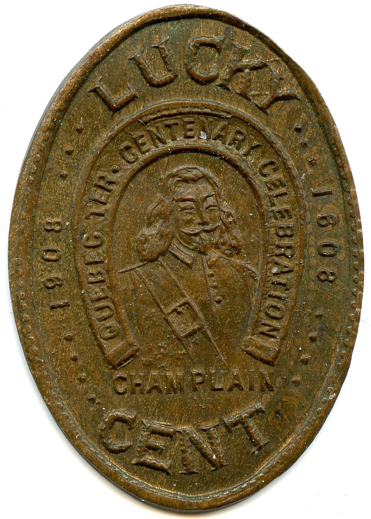 Bowman 3940a, Carignan & Drolet (plater), WM, 34mm, 10.16g, UNC; Bowman 4010a, Lucky Cent on an Elongated 1905 Canada Large Cent, EF. 2pcs.