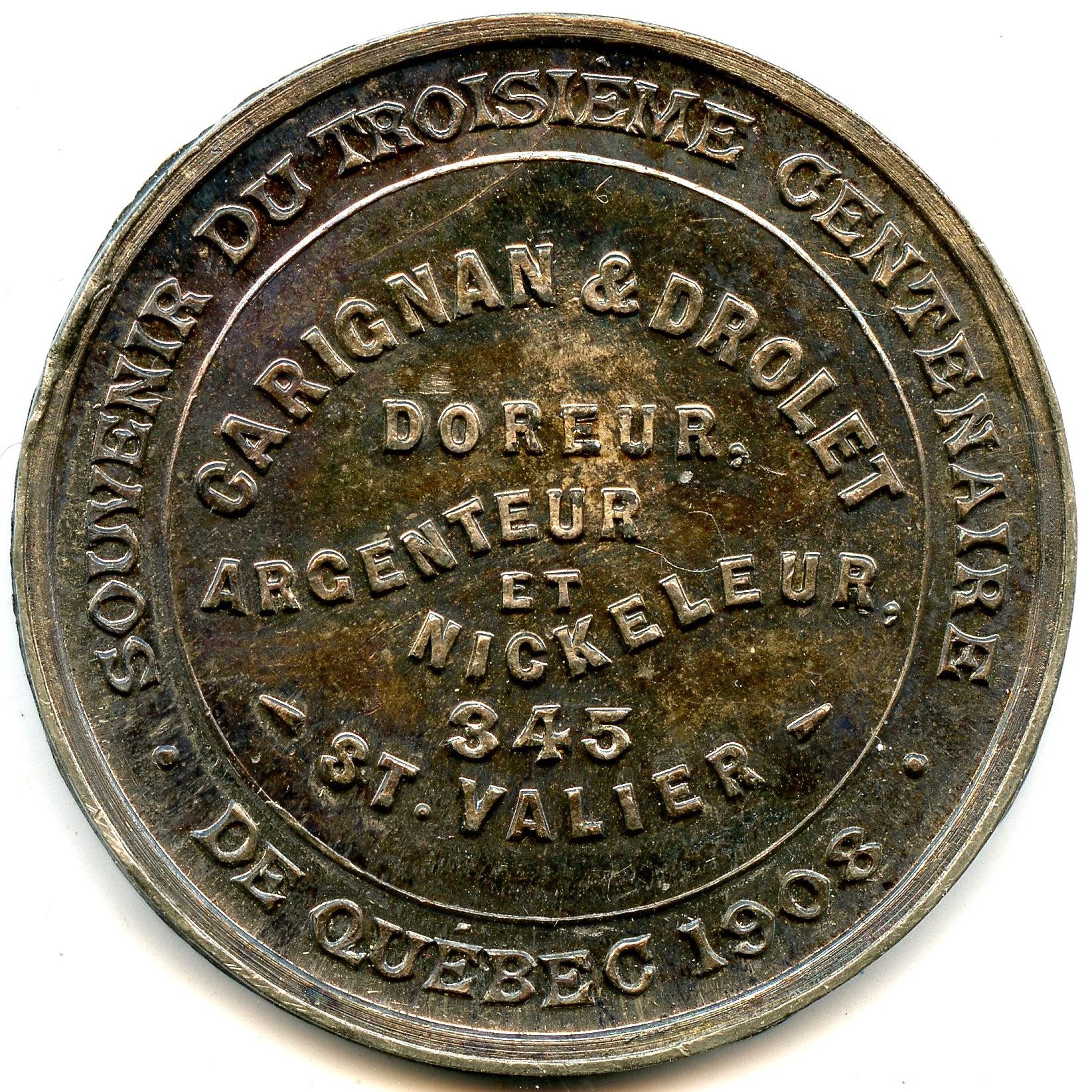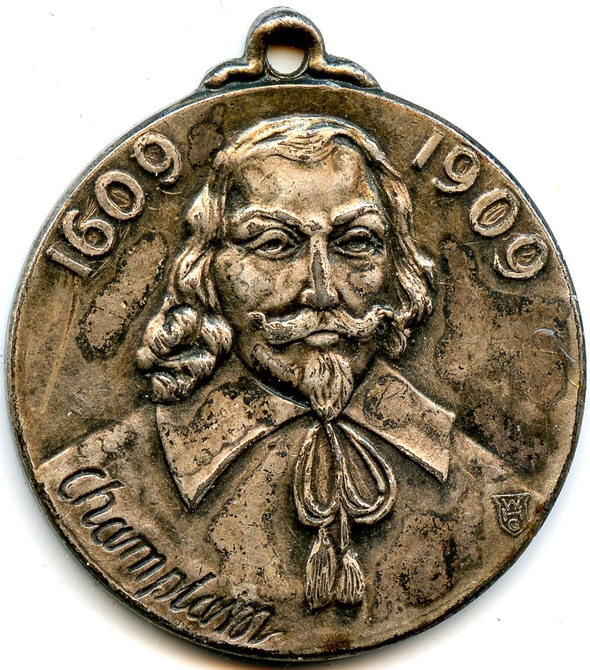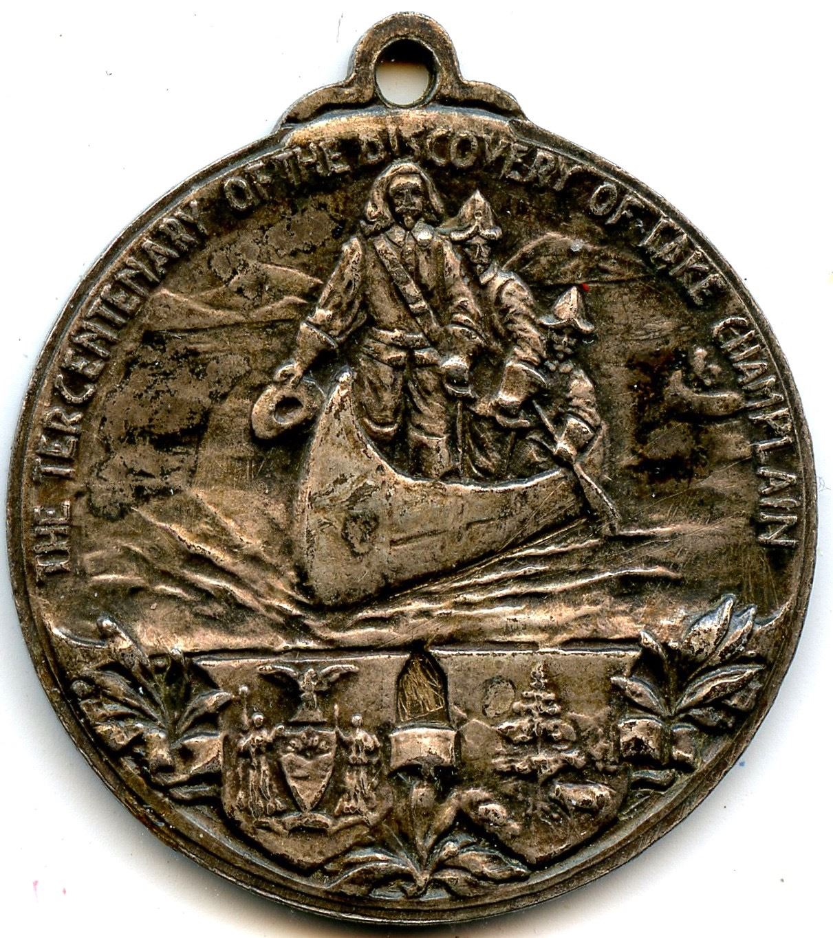 Bowman 3940a, Carignan & Drolet (plater), WM, 34mm, 10.02g, UNC; Bowman 4002a, 1608-1908 Ter-Centenary, Aluminum, 35mm, 3.50g, UNC; 300th Anniversary of the Discovery of Lake Champlain, WM, 25mm with top suspension, 6.71g, EF. 3pcs.