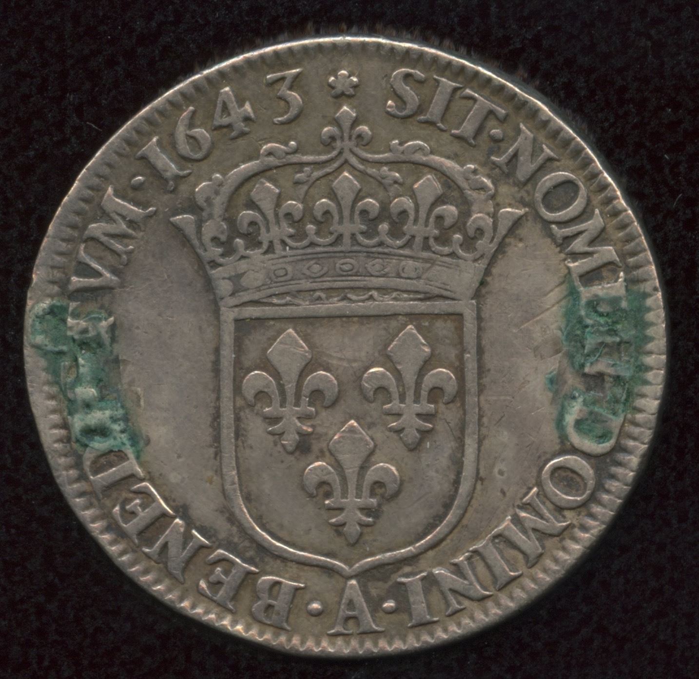 deuxième poinçon de Warin, Louis XIII, 1643A rose, G & D 48. VF, but light obv. scratches and some green on rev.