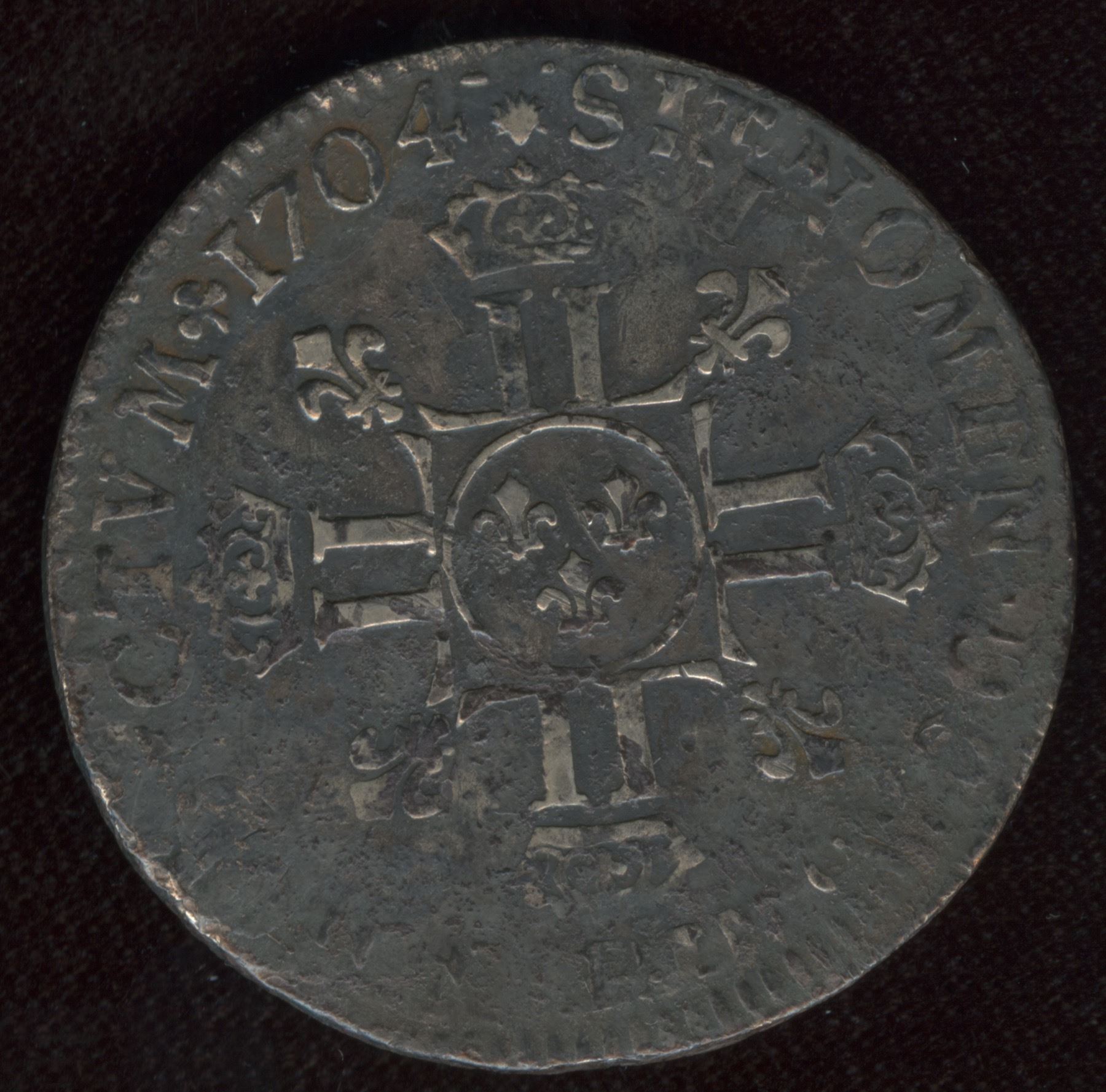 aux 8 L 2eme type, Louis XIV, 1704P, G & D 161. Fine+, some dirt.