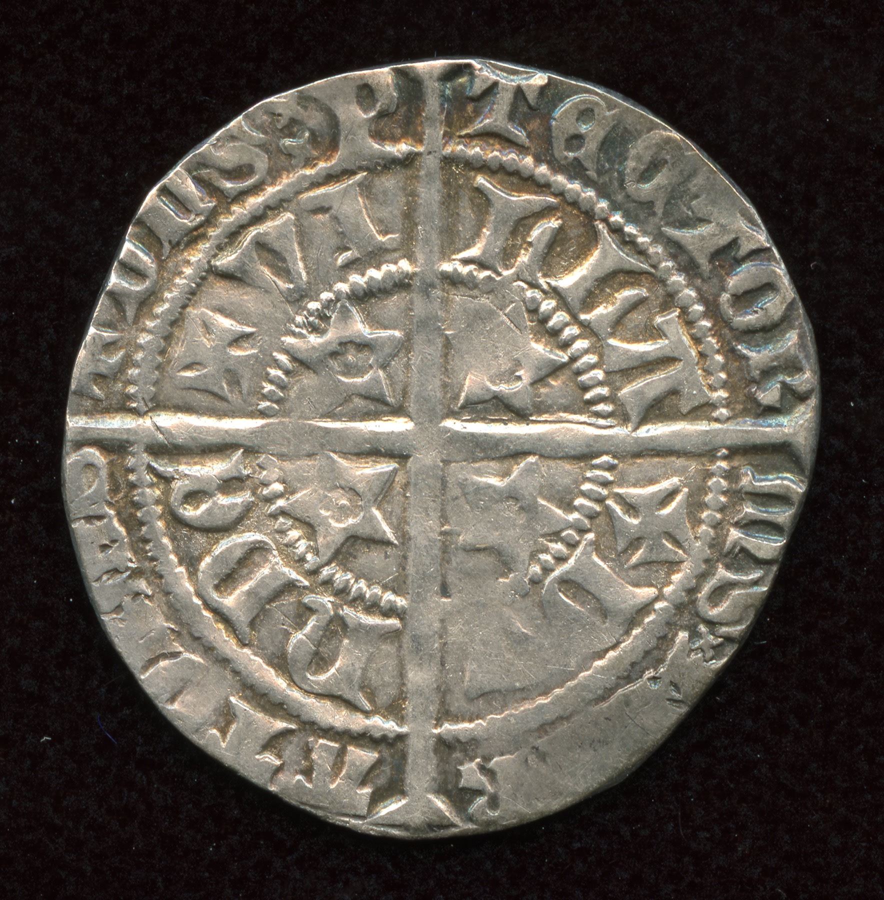 AR Groat (26.5mm, 3.12 g). Dundee mint. Crowned large bust left, to left, scepter with star on base, all within tressure of six arches; trefoils in spandrels / Long cross pattée; in each quarter, mullet with central rosette. SCBC 5135. Fine+, toned, areas of flat strike.
