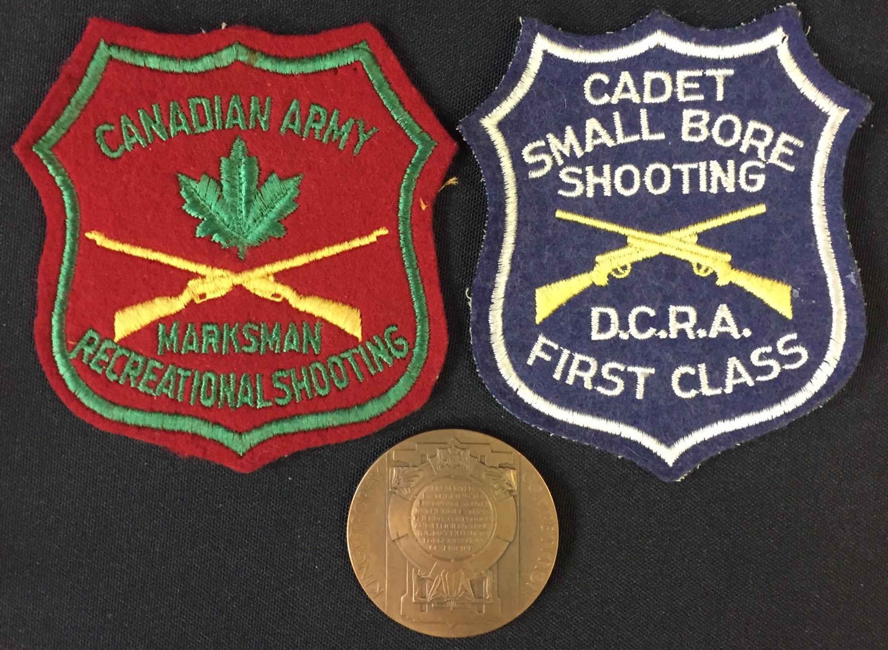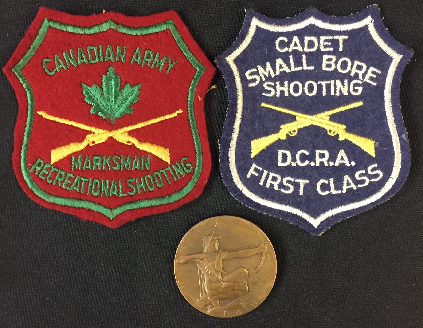 British NRA Kings Trophy Competition, Not Awarded. Cadet Small Bore Shooting DCRA First Class Patch. Canadian Army Marksman Recreational Shooting Patch. Unc. 3 Pcs.
