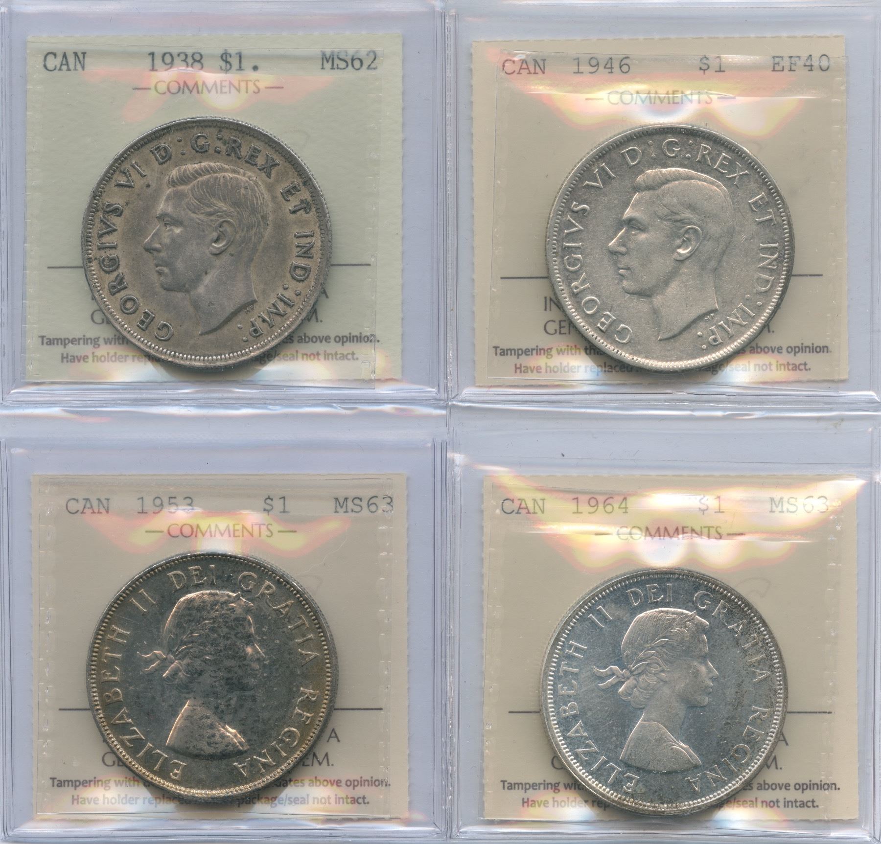 Includes: ICCS 1938 MS62; ICCS 1946 EF40; ICCS 1952 MS63. NSF; ICCS 1964 MS63. 4 Pcs.