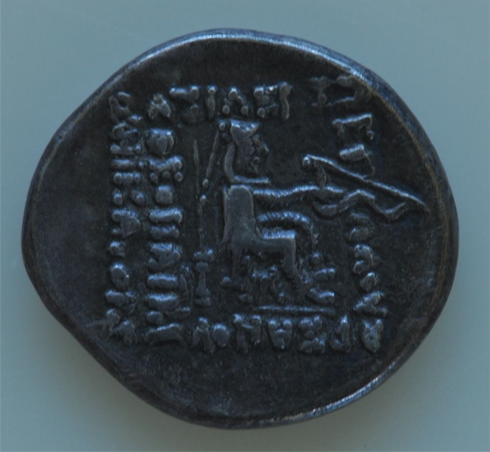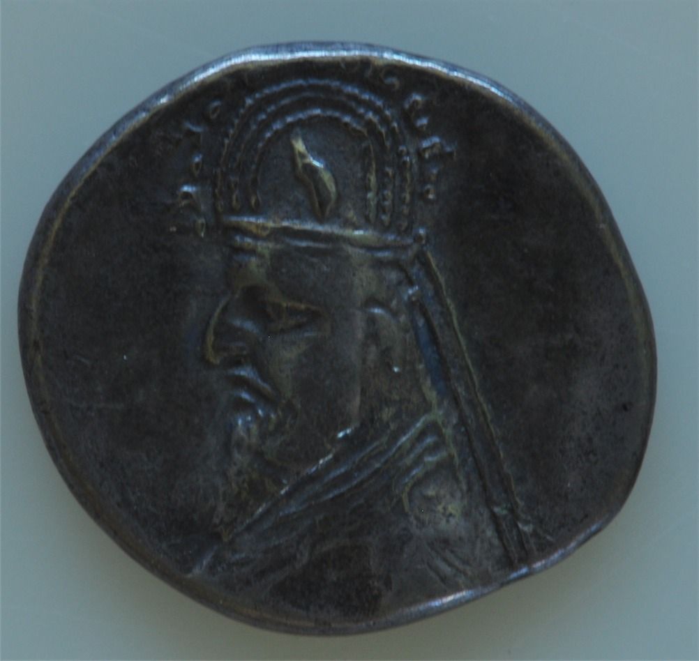 Sinatrukes (77-70 BC) - AR-Drachm Obv: Cuir. bust l., with pointed beard, wearing tiara with horn and foreparts of stags. Rev: Archer enthroned w. bow 4.0 grams Shore 114 Sellwood 33.4 VF.