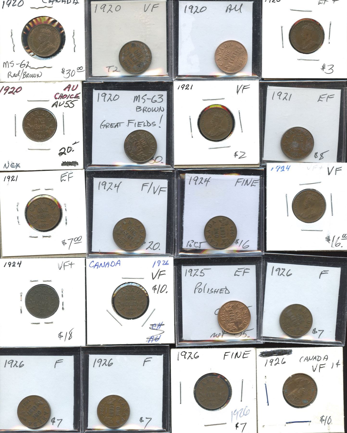 Dealer inventory dating from 1920 to 1947 with valuation of $870 - 74 Pcs.