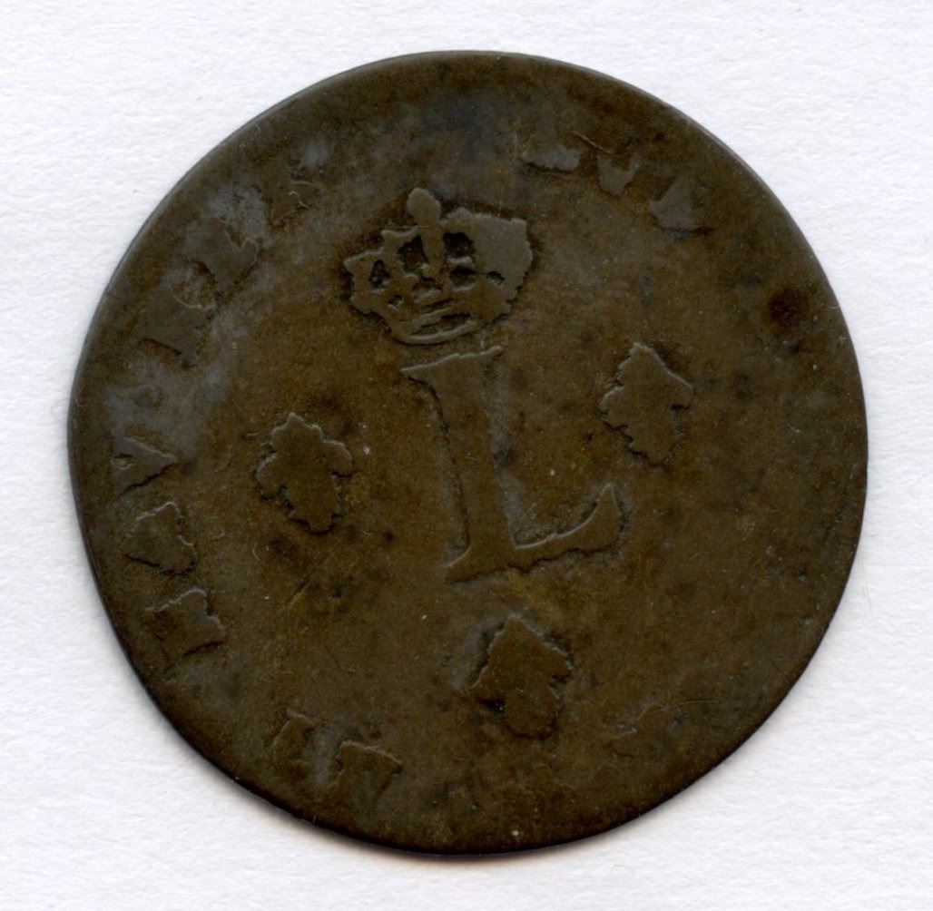 Sous-Marque. 1739-R. - Orleans Mint. Vlack 175. R-4. Good, struck from rusted dies. Ex: Vlack Sale, lot 1026.